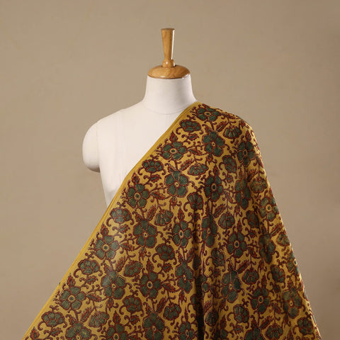 Yellow ajrakh hand block print pure mul cotton fabric by artisan Sufiyan Ismail Khatri crafted using natural dyeing and resist block-printing techniques. This ancient craft is estimated to be around 4,500 years old. The Ajrakh artisans in India originally migrated from Sindh to the Kutch region of Gujarat and to Barmer in Rajasthan. Ajrakh is also the traditional attire of the Maldhari pastoral community of Bhuj. The process is long and detailed, involving multiple stages where each layer of colour is printed only after a resting period, allowing the cloth to absorb the dye fully. Soft and breathable mul cotton makes it ideal for creating kurtas, shirts, dresses or even home decor items.