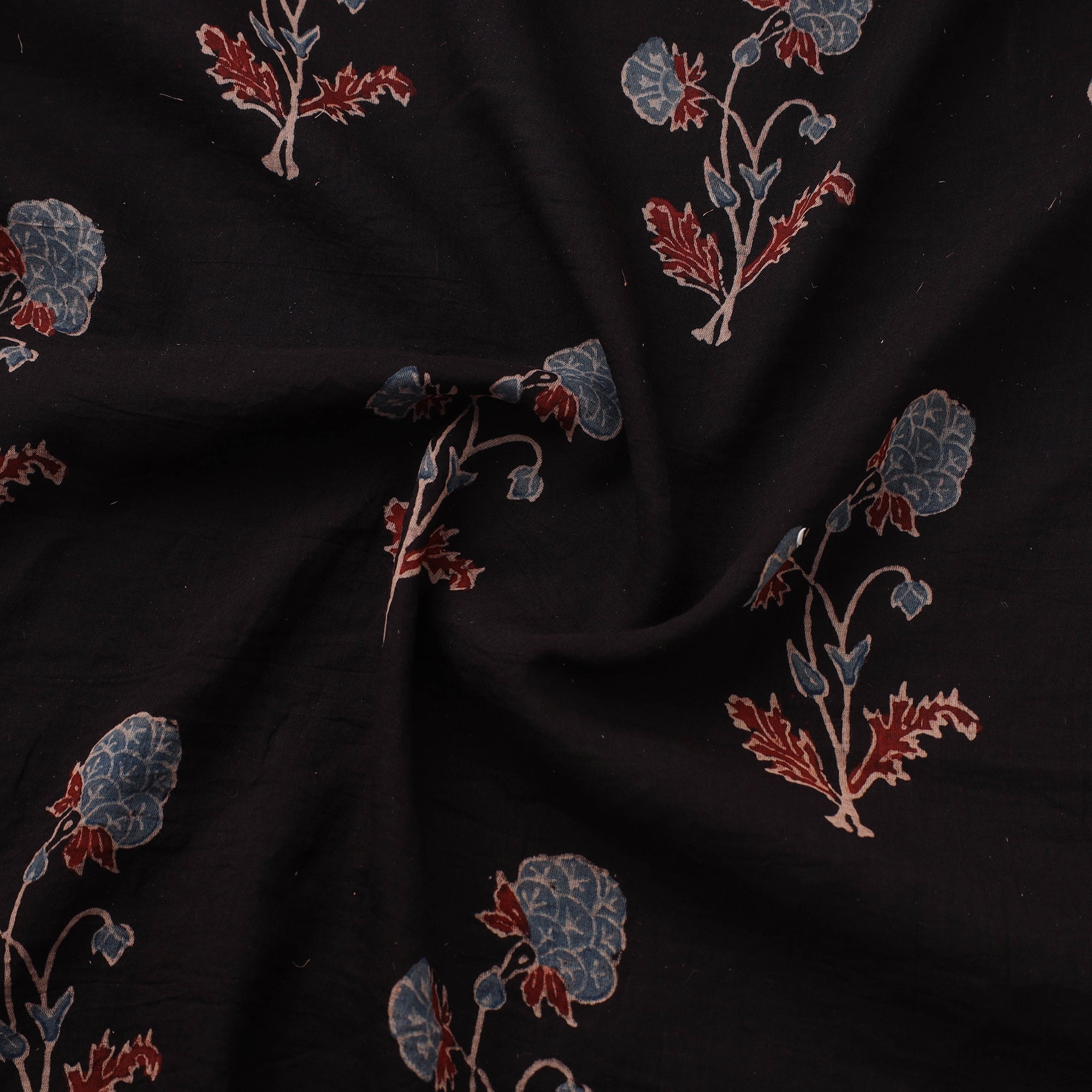 Ajrakh hand block print pure mul cotton fabric by artisan Sufiyan Ismail Khatri crafted using natural dyeing and resist block-printing techniques. This ancient craft is estimated to be around 4,500 years old. The Ajrakh artisans in India originally migrated from Sindh to the Kutch region of Gujarat and to Barmer in Rajasthan. Ajrakh is also the traditional attire of the Maldhari pastoral community of Bhuj. The process is long and detailed, involving multiple stages where each layer of colour is printed only after a resting period, allowing the cloth to absorb the dye fully. Soft and breathable mul cotton makes it ideal for creating kurtas, shirts, dresses or even home decor items.