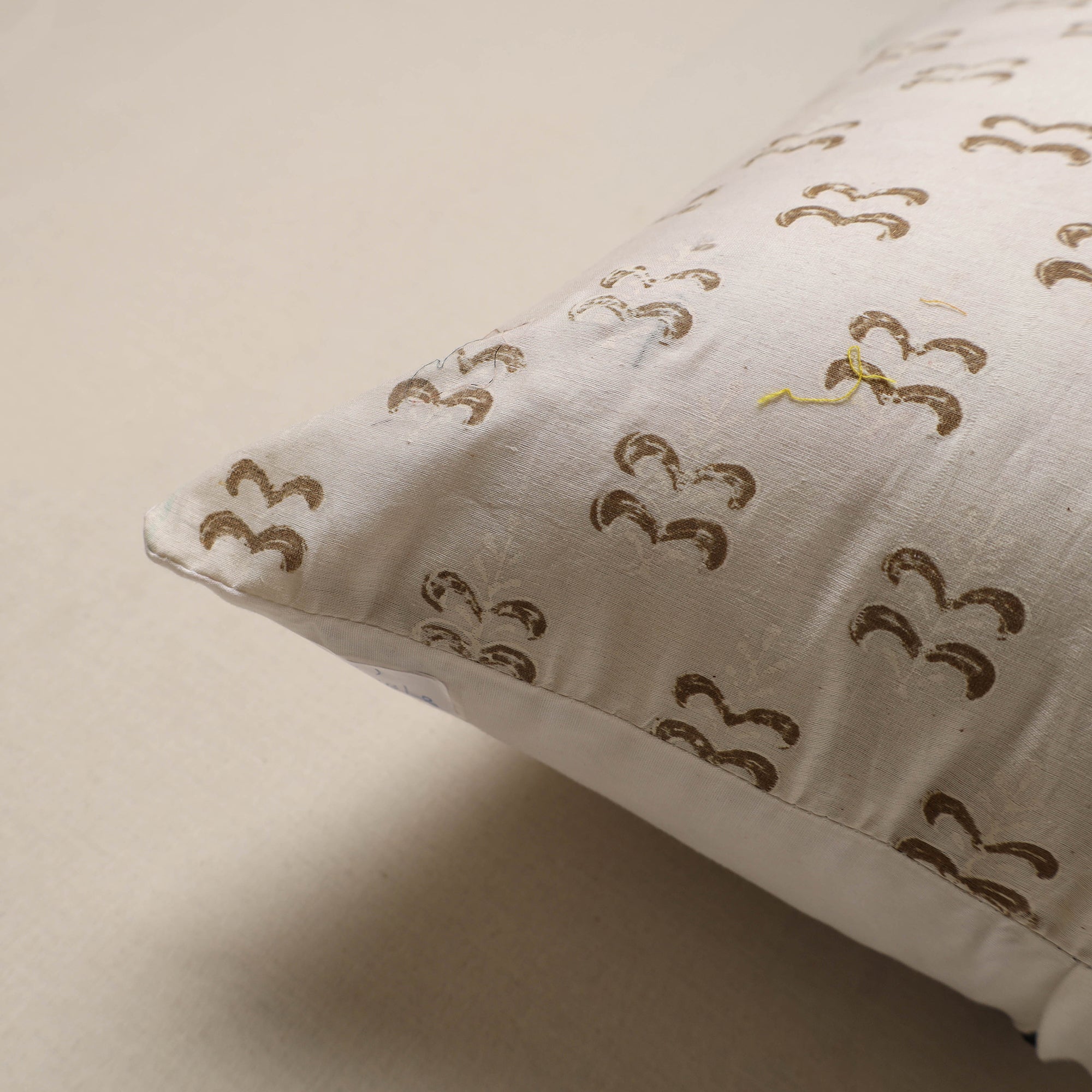 White hand block print sanganeri cushion cover, crafted from chanderi silk and traditional Indian handmade textiles. It blends artistry with comfort, making it perfect for your sofa, bed or lounge area.