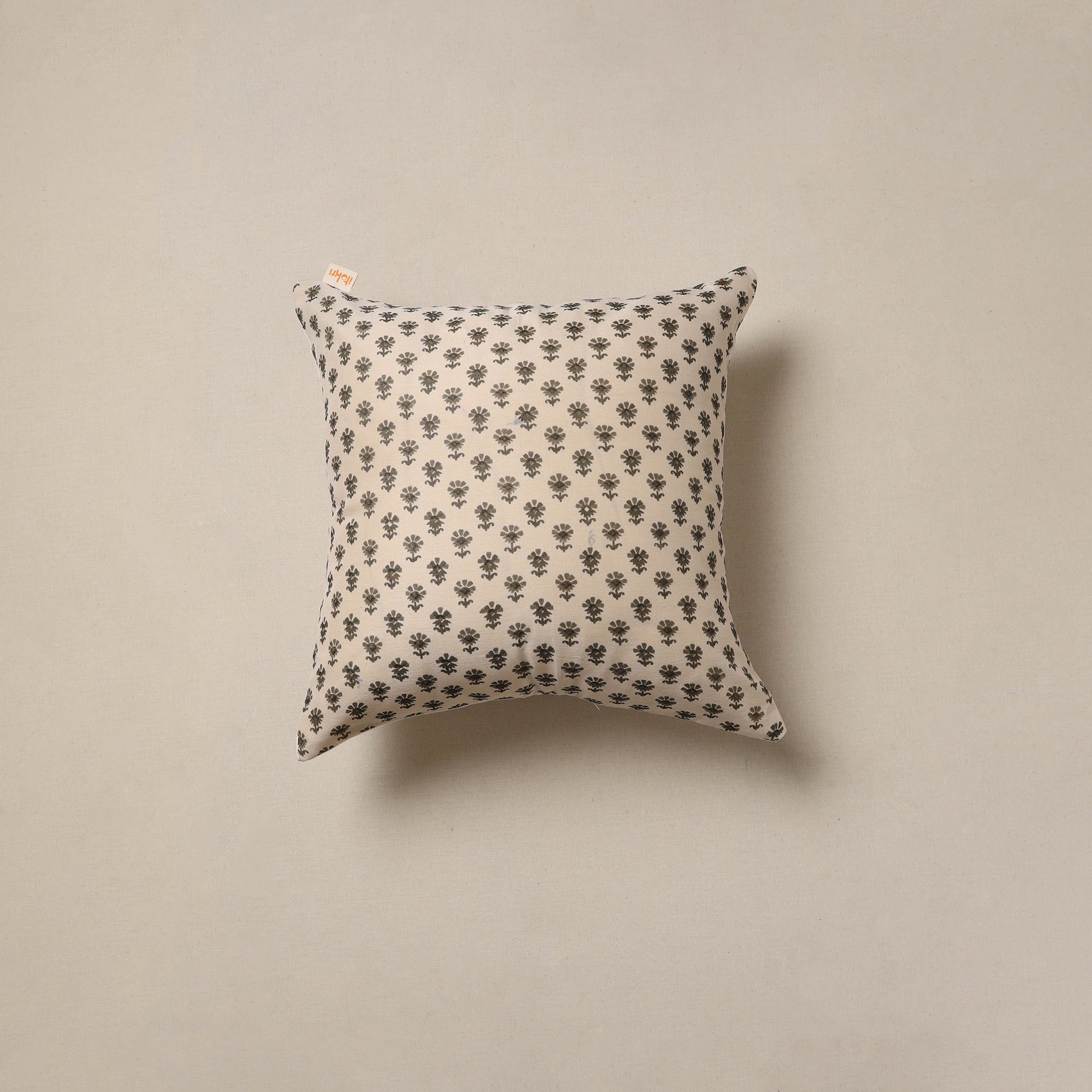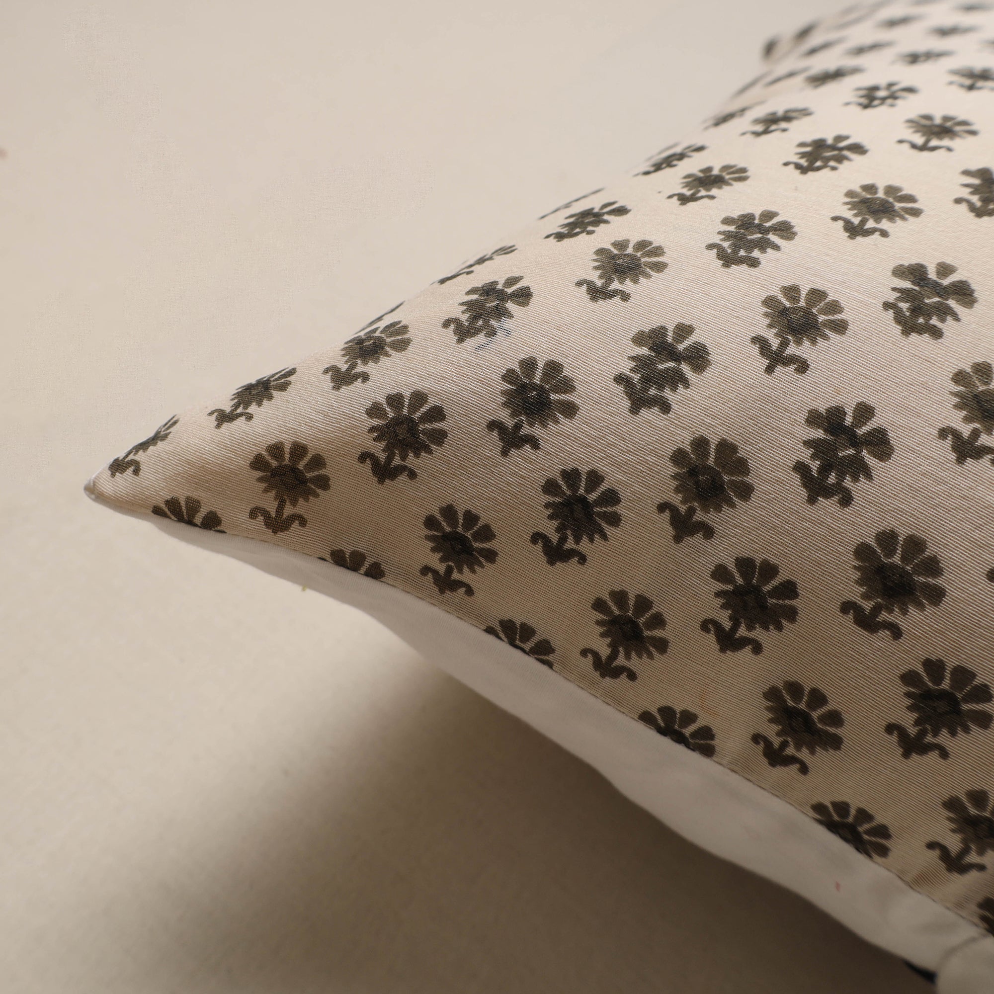 Beige hand block print sanganeri cushion cover, crafted from chanderi silk and traditional Indian handmade textiles. It blends artistry with comfort, making it perfect for your sofa, bed or lounge area.