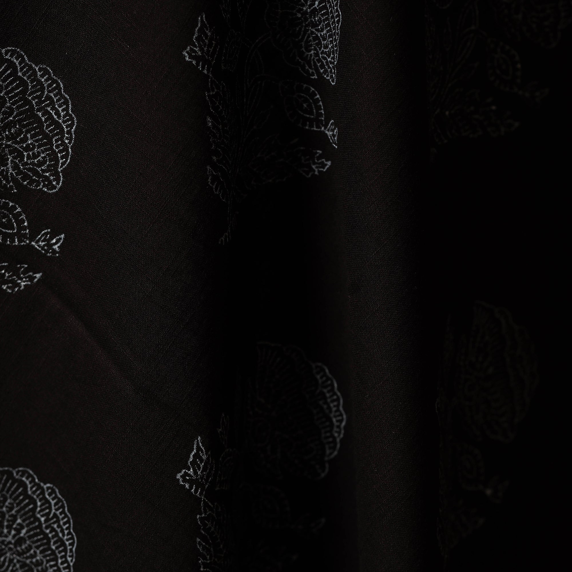 Black Sanganeri hand block printed slub cotton fabric by artisans in Sanganer, Jaipur, it showcases delicate floral patterns created with traditional wooden blocks. The breathable lightweight cotton is ideal for making kurtas, dresses, tunics or even home decor items like cushions and curtains.