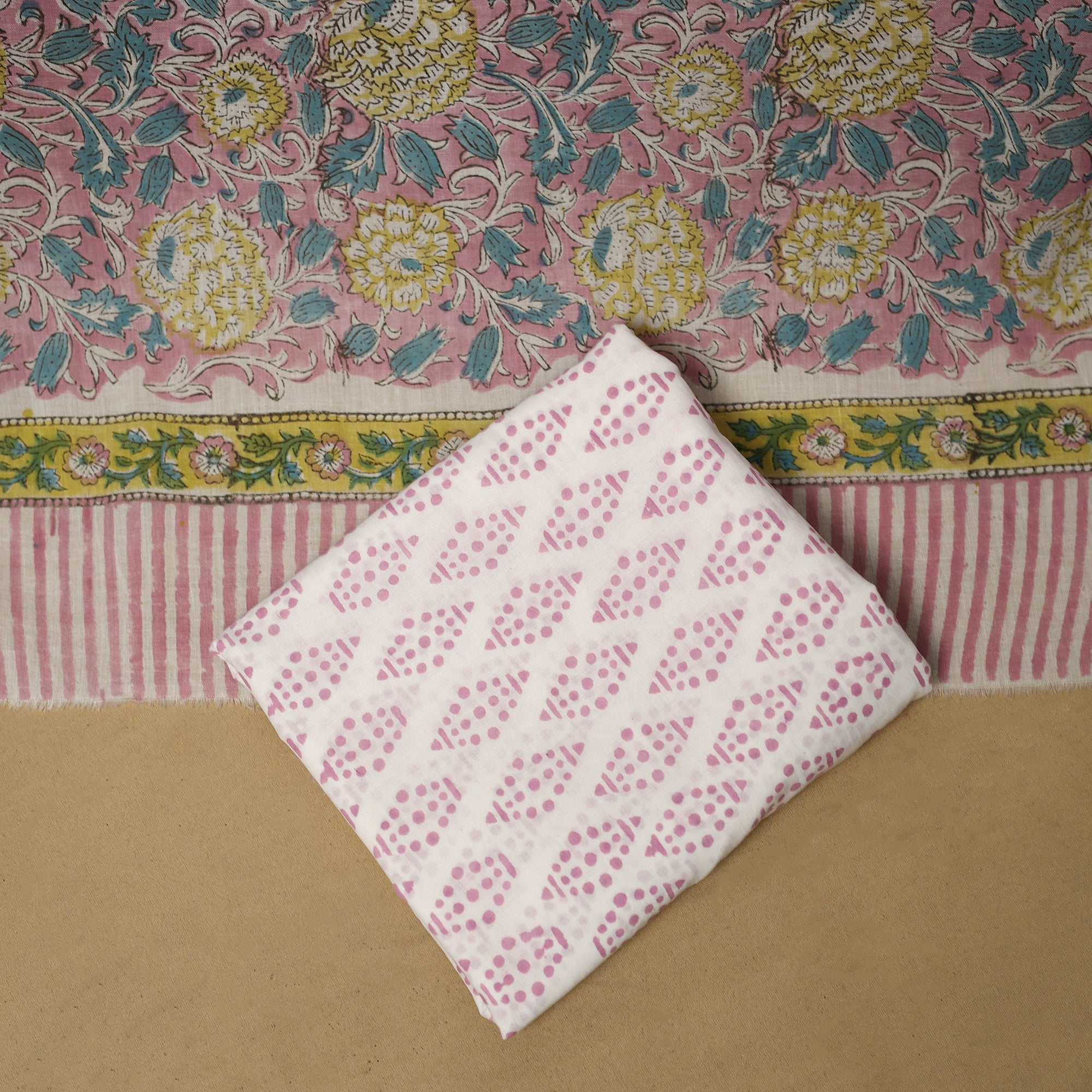 Hand-stamped block prints crafted by artisans using age-old techniques.