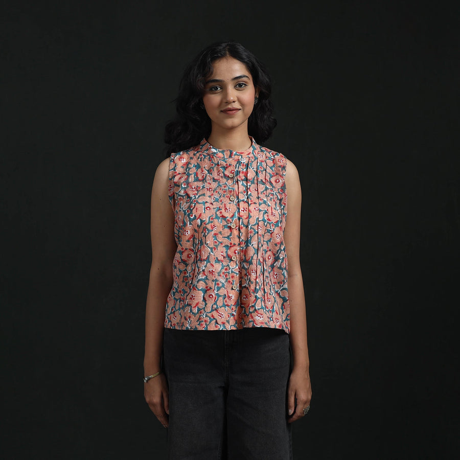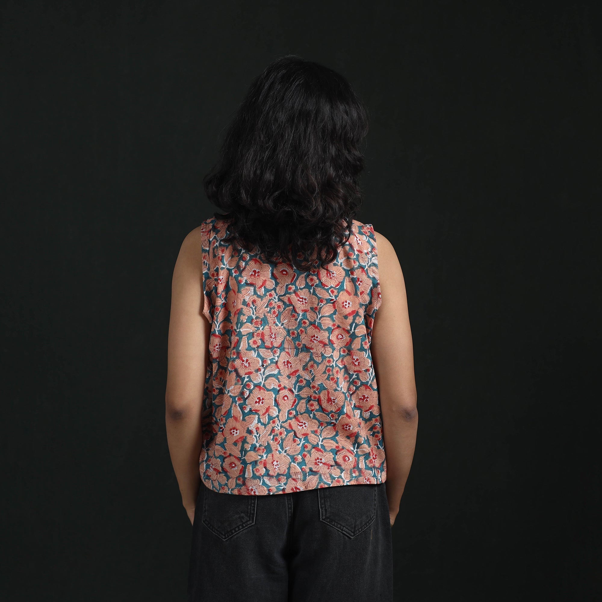 | Material | Pink sanganeri hand block print pure cotton sleeveless women’s floral crop top featuring a front button detailing. This traditional craft from Rajasthan has been practiced for over 500 years. It showcases delicate floral motifs printed with hand-carved wooden blocks and bleed-free VAT dyes. The breathable fabric ensures all-day comfort and pairs beautifully with skirts or pants. |