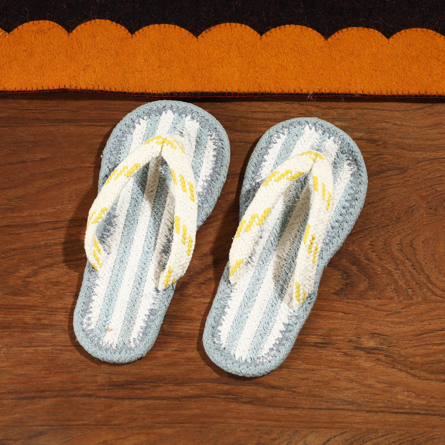 This grey hand-braided cotton home slipper is designed for pure indoor comfort. Flexible and soft, it is made by skilled artisans who blend utility with thoughtful design. Without a hard sole, it cushions your feet gently, making it ideal for bedrooms, living areas, or simply unwinding at home. This unisex slipper is perfect for anyone who values comfort and artisanal quality.
