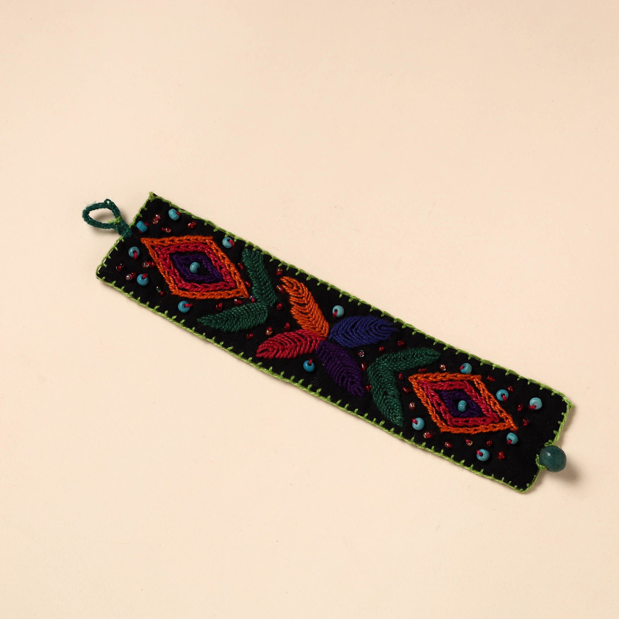 This hand-embroidered, handmade bracelet seamlessly blends traditional craftsmanship with modern aesthetics. Designed by skilled artisans, this boho inspired piece features intricate embroidery and fine detailing, making it a perfect accessory for festivals, casual outings, or special occasions. The button loop closure ensures a secure and comfortable fit, adding both elegance and convenience to your jewelry collection..