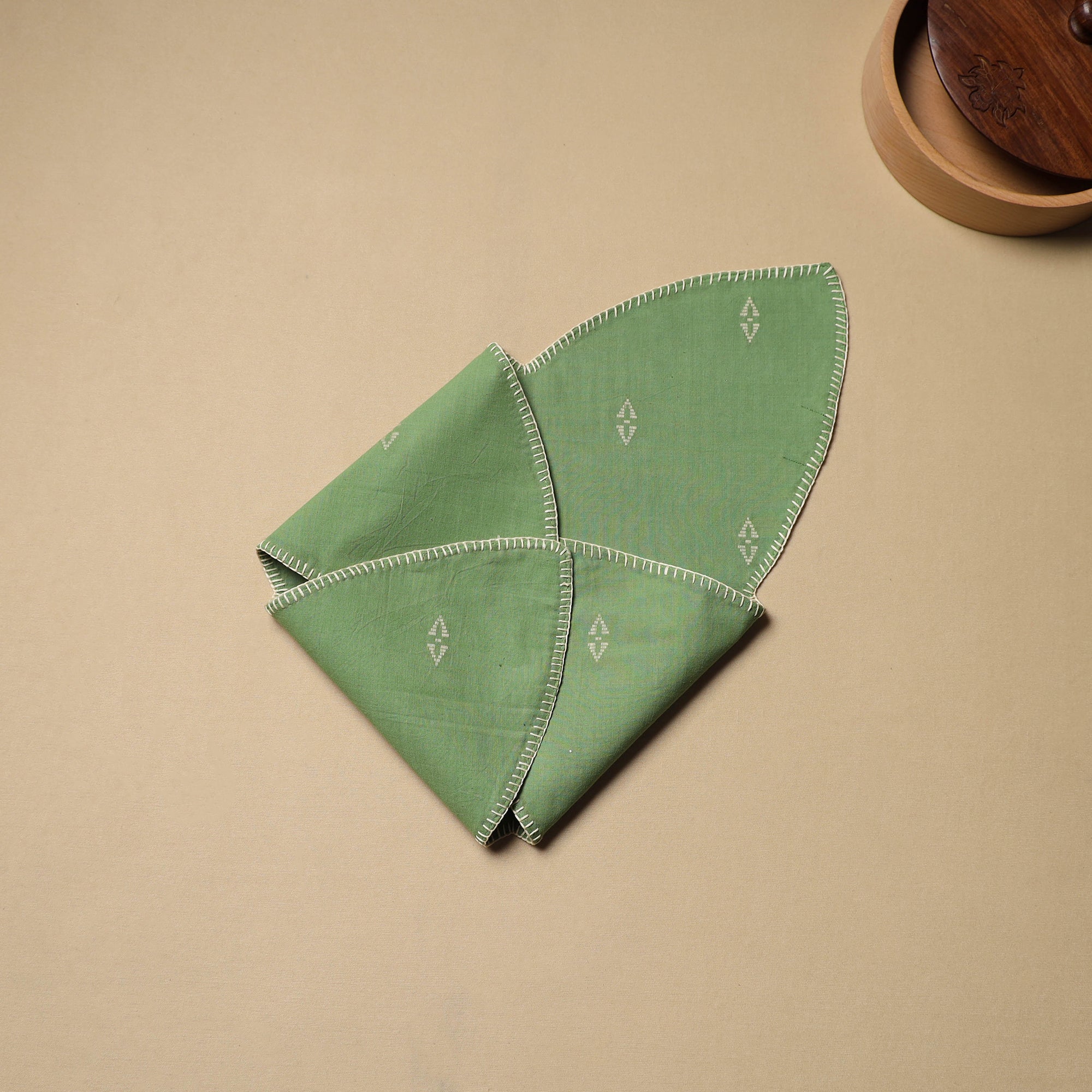 Keep your rotis fresh and warm with this elegantly green embroidered cotton roti napkin. Crafted for both style and practicality, its soft cotton fabric and intricate embroidery bring a touch of charm to your dining table.