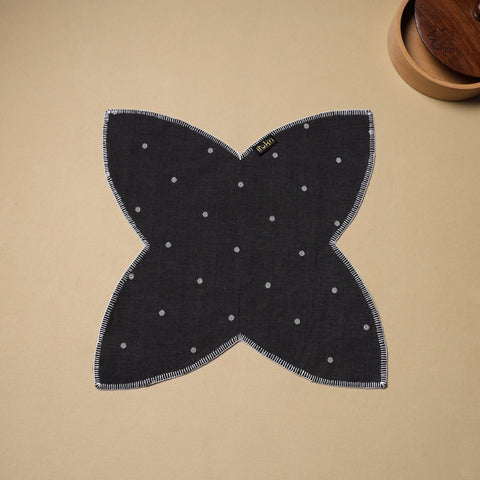 Keep your rotis fresh and warm with this elegantly black embroidered cotton roti napkin. Crafted for both style and practicality, its soft cotton fabric and intricate embroidery bring a touch of charm to your dining table.