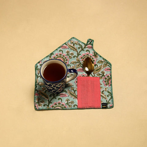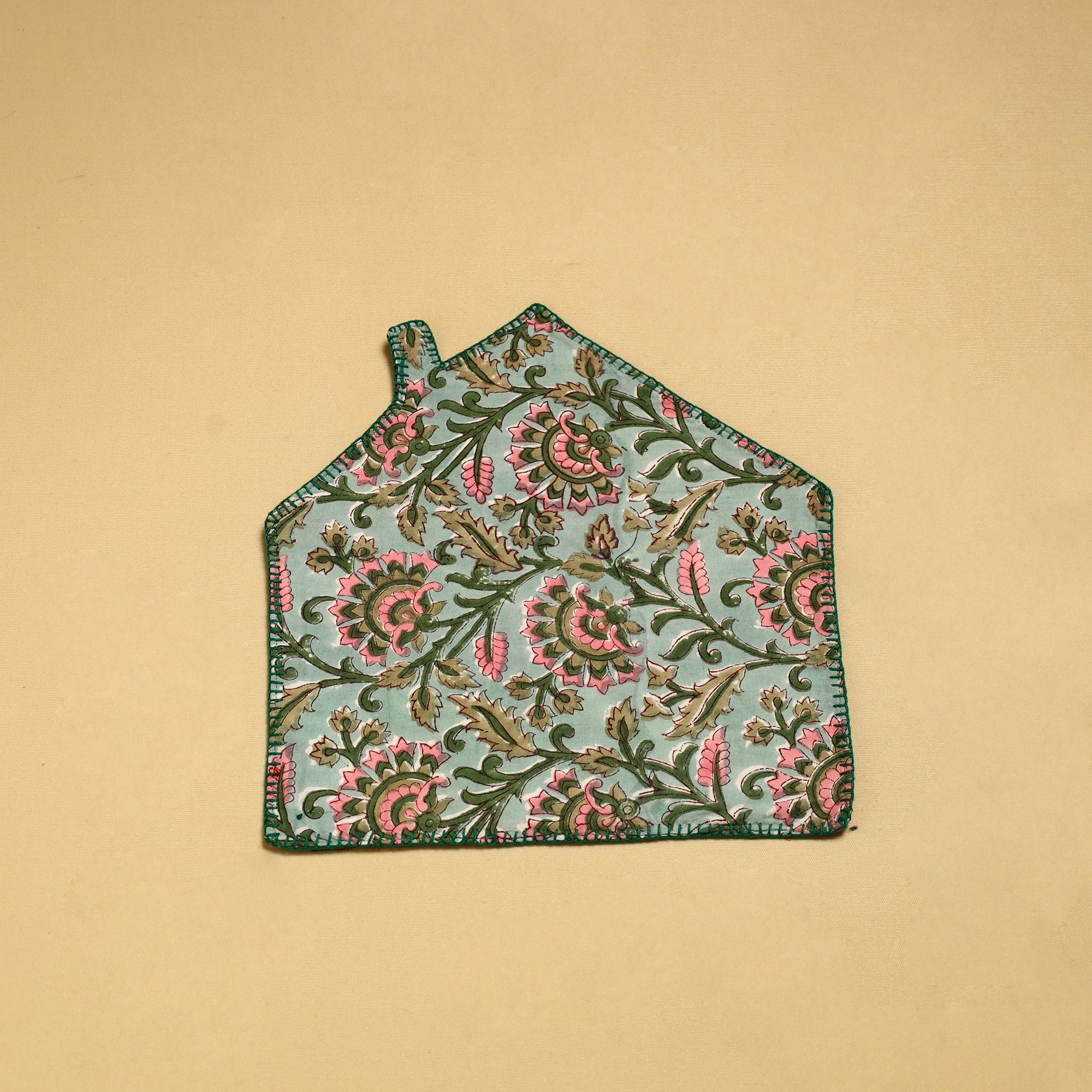 This hand embroidered light green floral cotton pot holder with pocket is a perfect blend of style and functionality. crafted with care, it protects your surfaces from hot pots, making it a must-have for every kitchen. Fashionable and safe to use as potholder or trivets.