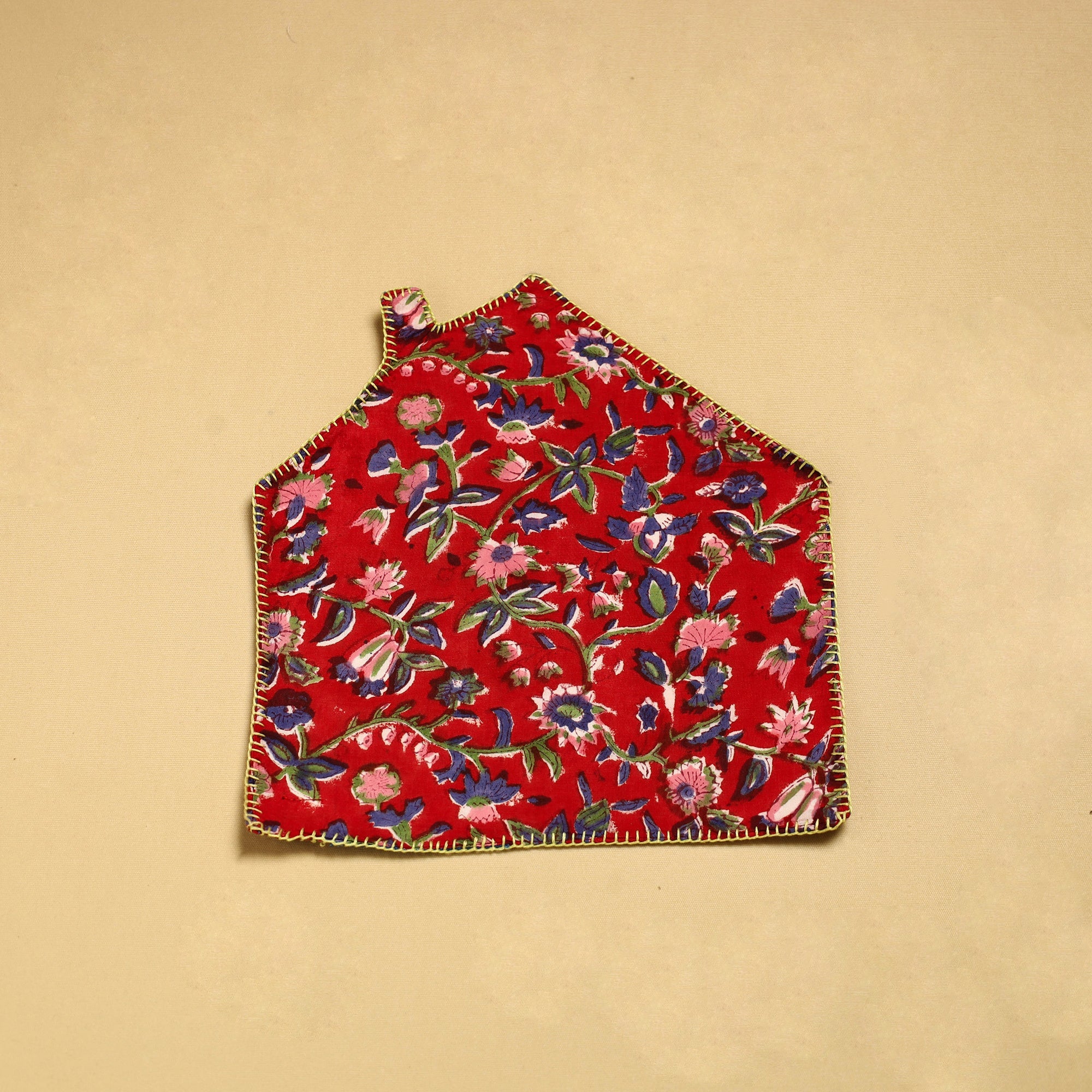 This hand embroidered floral cotton red pot holder with pocket is a perfect blend of style and functionality. crafted with care, it protects your surfaces from hot pots, making it a must-have for every kitchen. Fashionable and safe to use as potholder or trivets.