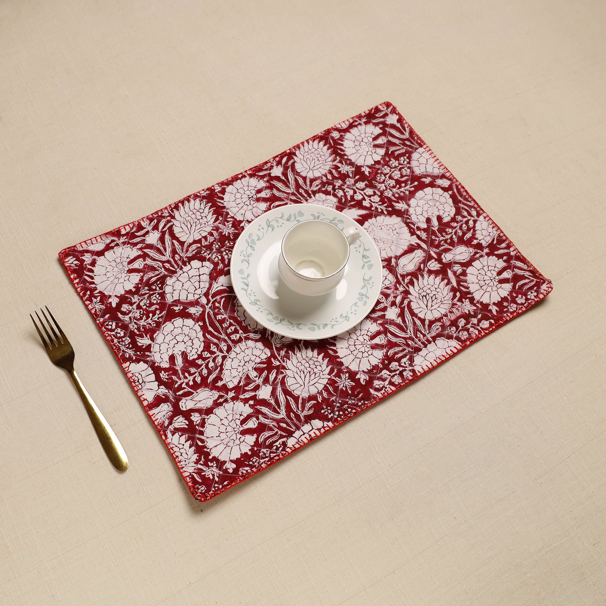 Add artisanal charm to your home with this maroon hand embroidery floral cotton reversible table mat. Handcrafted with love by iTokri artisans, it features intricate floral prints on both sides, perfect for dining or coffee tables, it protects surfaces while enhancing decor.