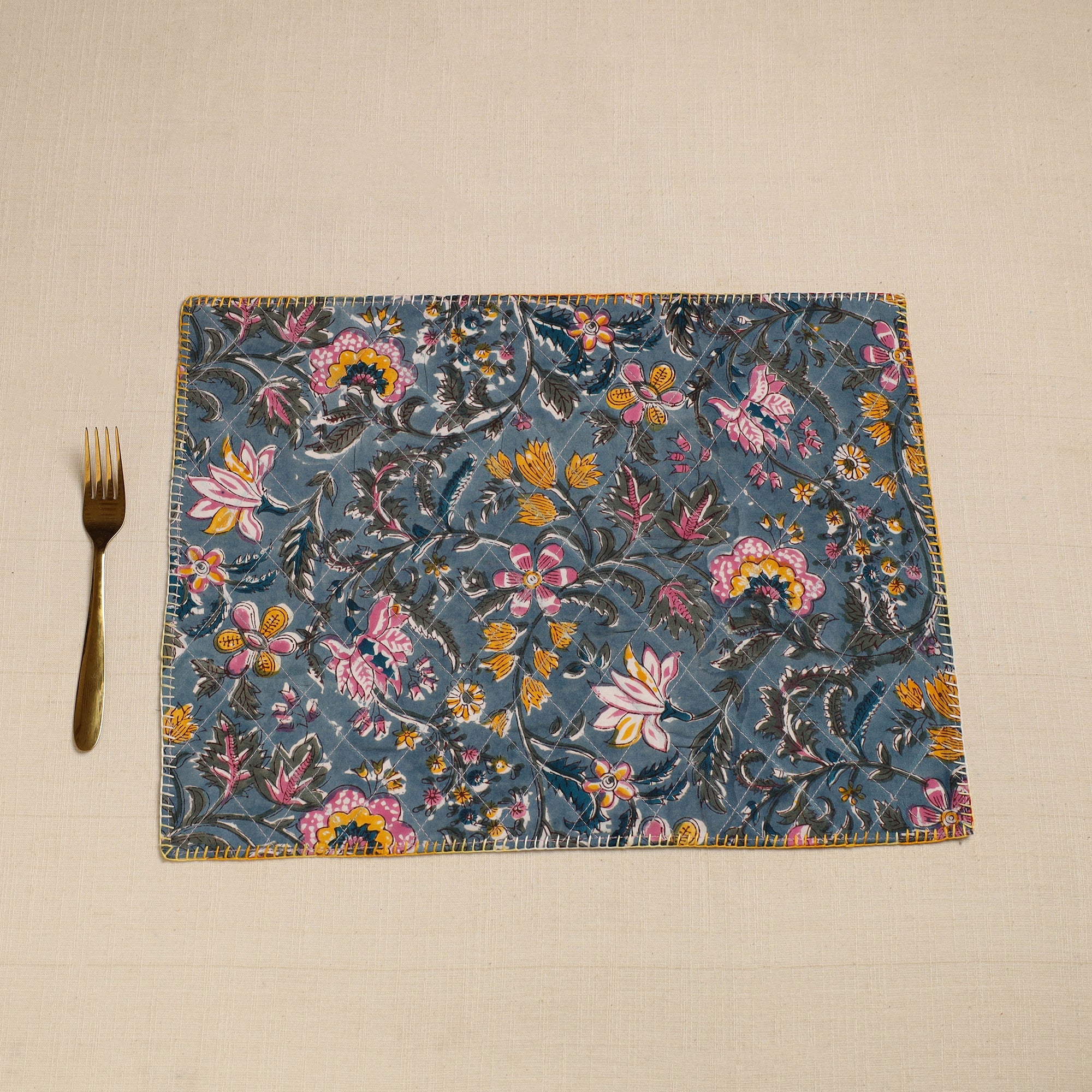 Add artisanal charm to your home with this slate blue hand embroidery floral cotton reversible table mat. Handcrafted with love by iTokri artisans, it features intricate floral prints on both sides, perfect for dining or coffee tables, it protects surfaces while enhancing decor.