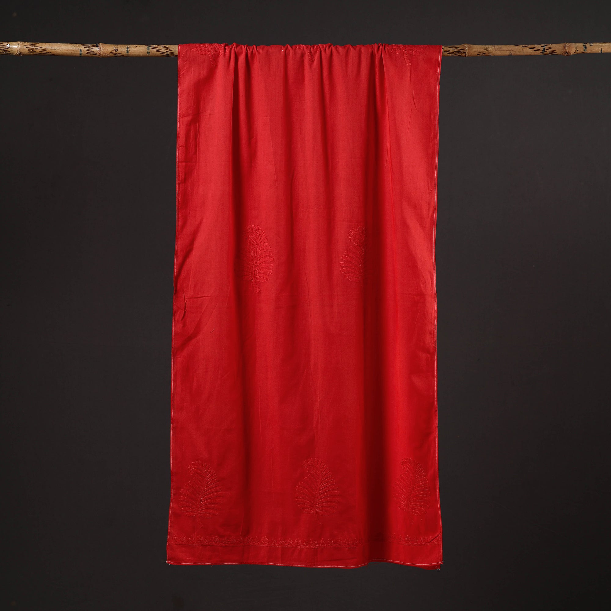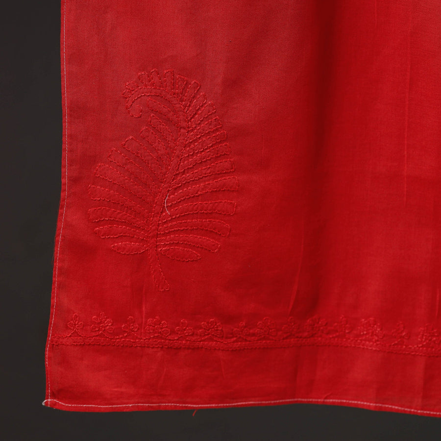 Artfully done red hand embroidered lucknow chikankari cotton stole. Chikankari is a traditional textile decorative from Lucknow. It is very delicate and intricate hand embroidery work where thread is embroidered on cool, pastel shades of light cotton garments.
