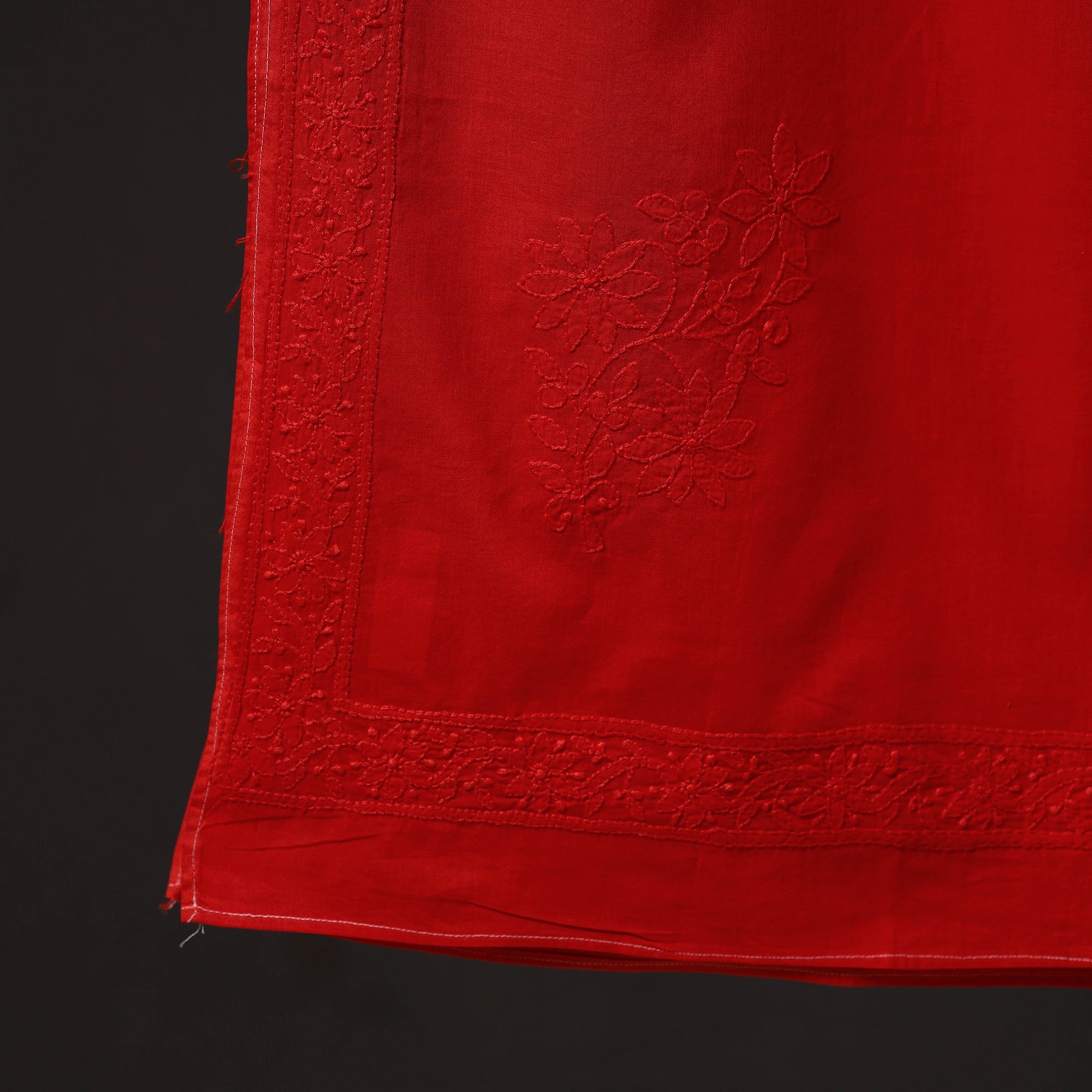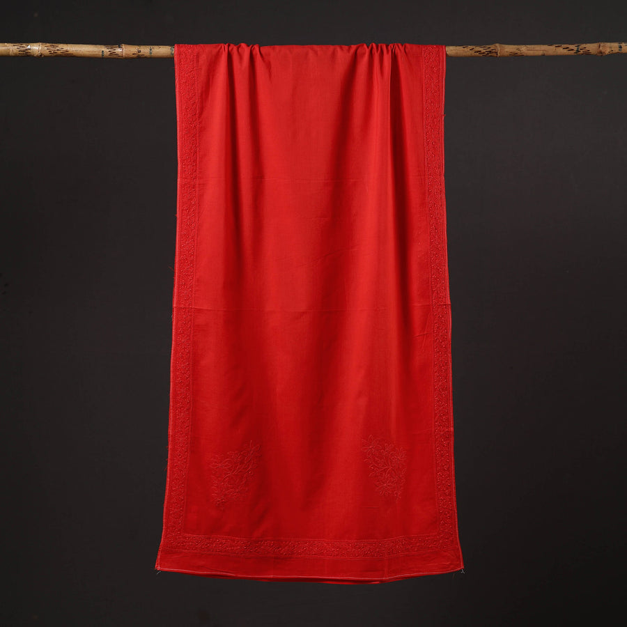 Material Artfully done red hand embroidered lucknow chikankari cotton stole. Chikankari is a traditional textile decorative from Lucknow. It is very delicate and intricate hand embroidery work where thread is embroidered on cool, pastel shades of light cotton garments.