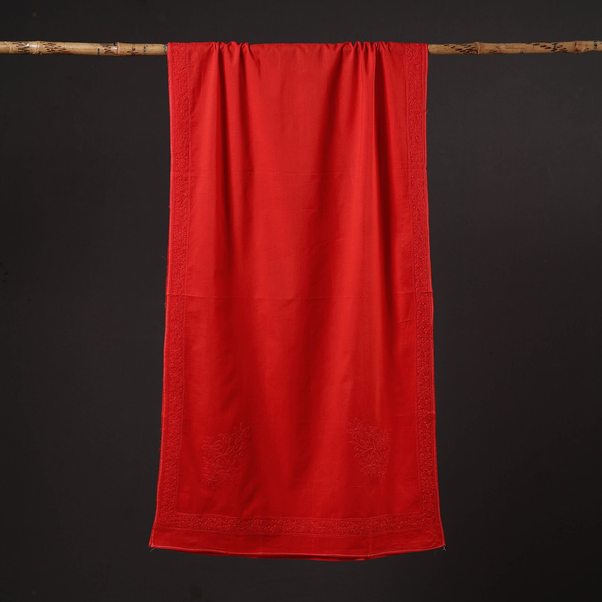 Red - Hand Embroidered Lucknow Chikankari Cotton Stole 04