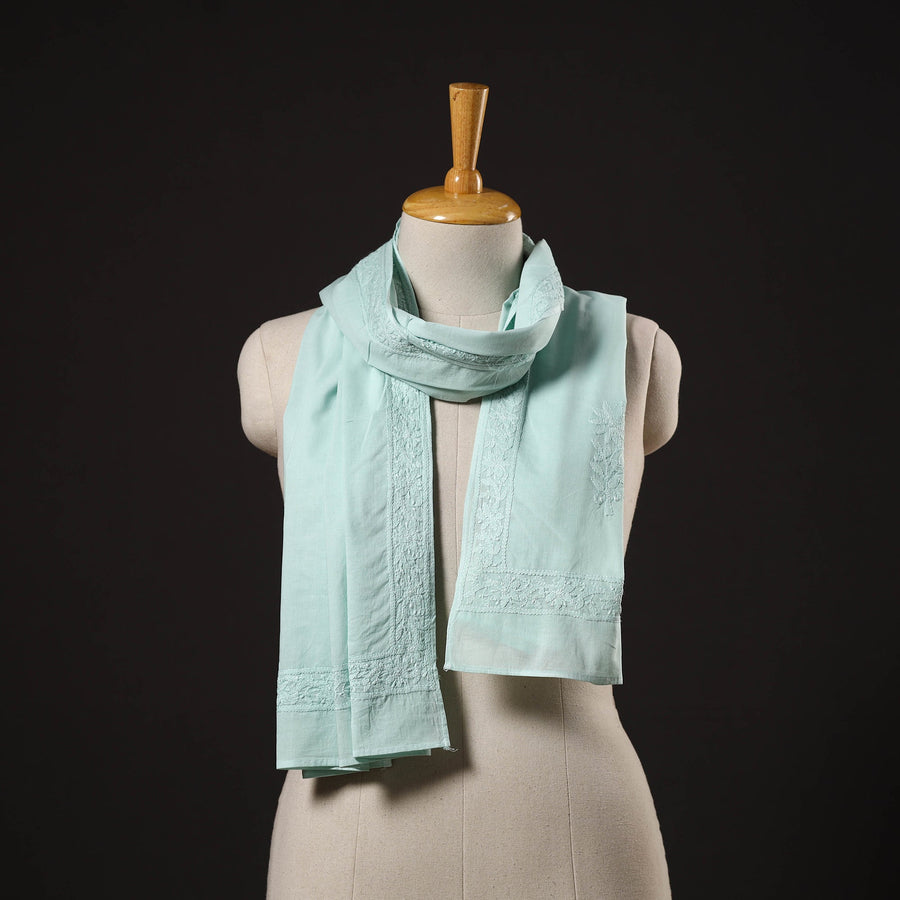 Artfully done blue hand embroidered lucknow chikankari cotton stole. Chikankari is a traditional textile decorative from Lucknow. It is very delicate and intricate hand embroidery work where thread is embroidered on cool, pastel shades of light cotton garments.