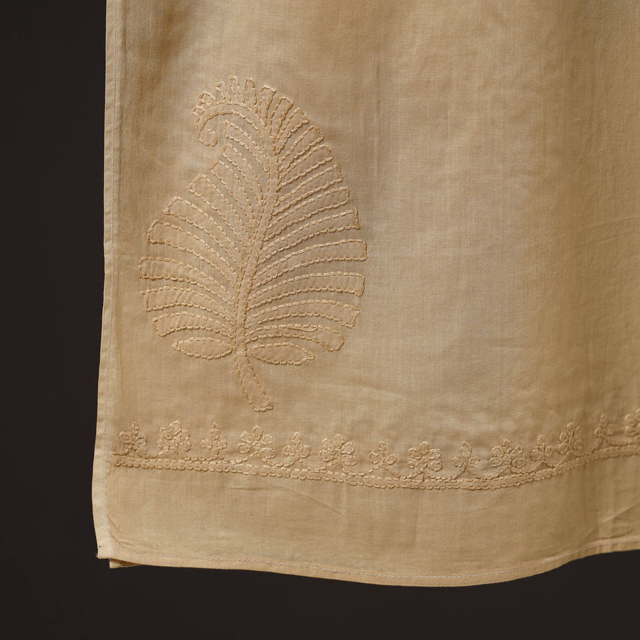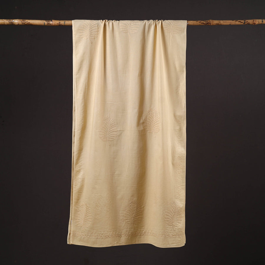 Beige - Hand Embroidered Lucknow Chikankari Cotton Stole 09