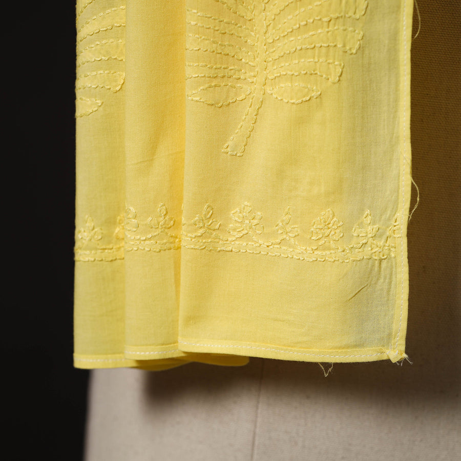 | Material | Artfully done yellow hand embroidered lucknow chikankari cotton stole. Chikankari is a traditional textile decorative from Lucknow. It is very delicate and intricate hand embroidery work where thread is embroidered on cool, pastel shades of light cotton garments. |