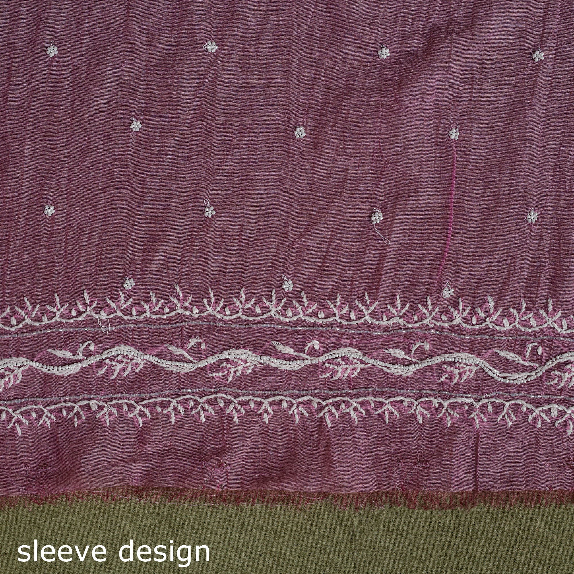 2pc pink chikankari dress material set includes a beautifully hand-embroidered kurta with a matching dupatta, both crafted in chanderi silk x mul cotton. The dupatta is enhanced with delicate zari borders and tassels. Chikankari, a traditional embroidery art from Lucknow, showcases fine craftsmanship and cultural heritage.