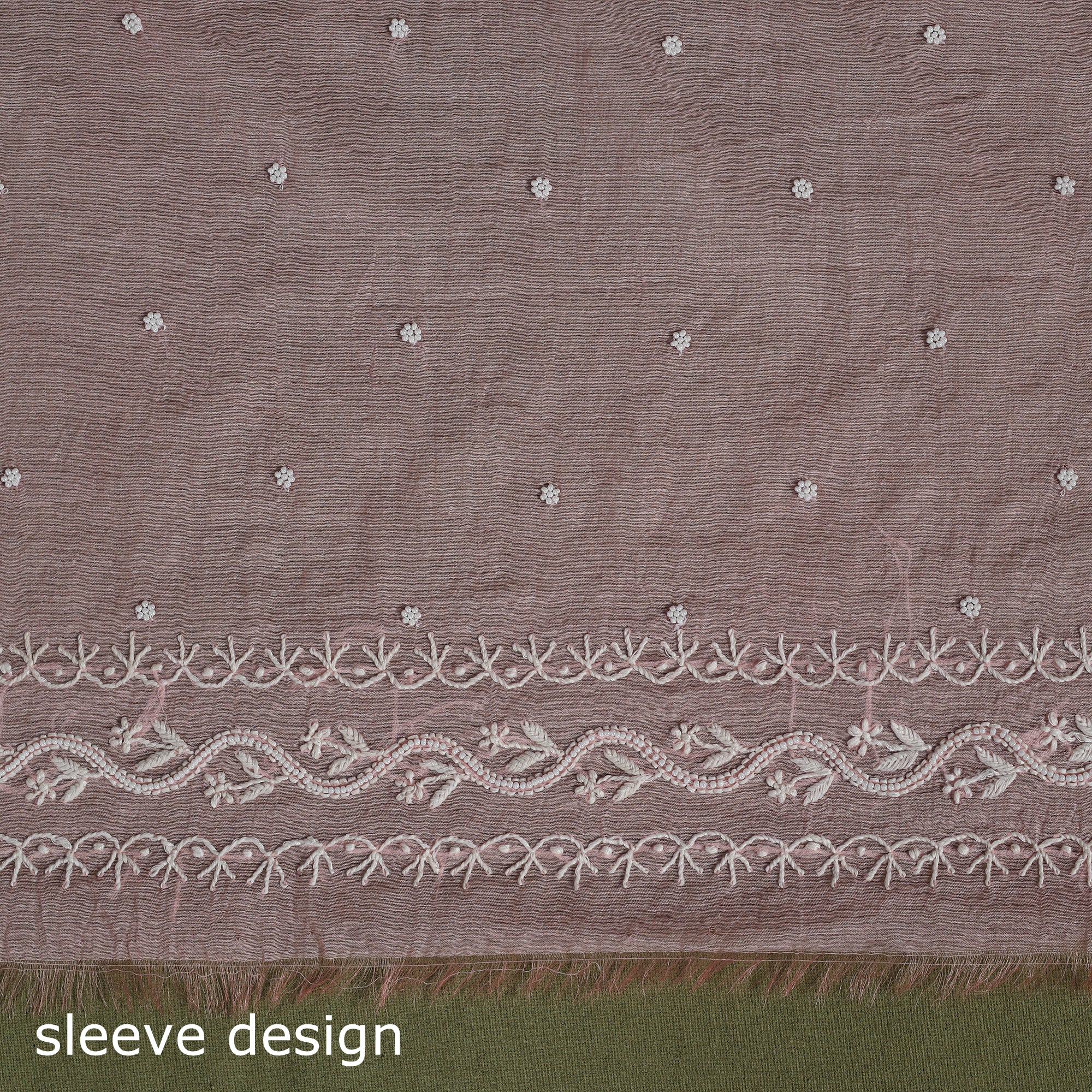 2pc pink chikankari dress material set includes a beautifully hand-embroidered kurta with a matching dupatta, both crafted in chanderi silk x mul cotton. The dupatta is enhanced with delicate zari borders and tassels. Chikankari, a traditional embroidery art from Lucknow, showcases fine craftsmanship and cultural heritage.