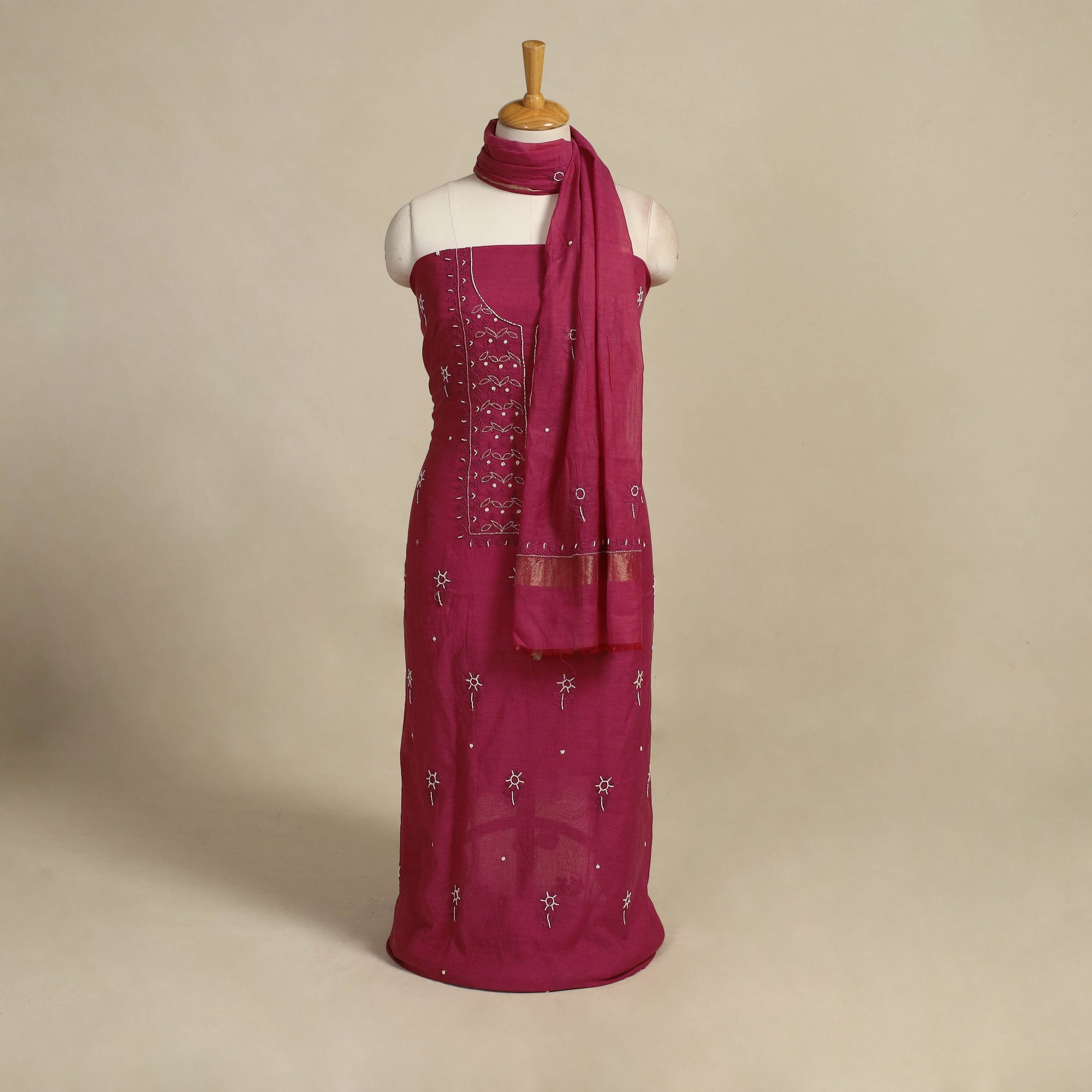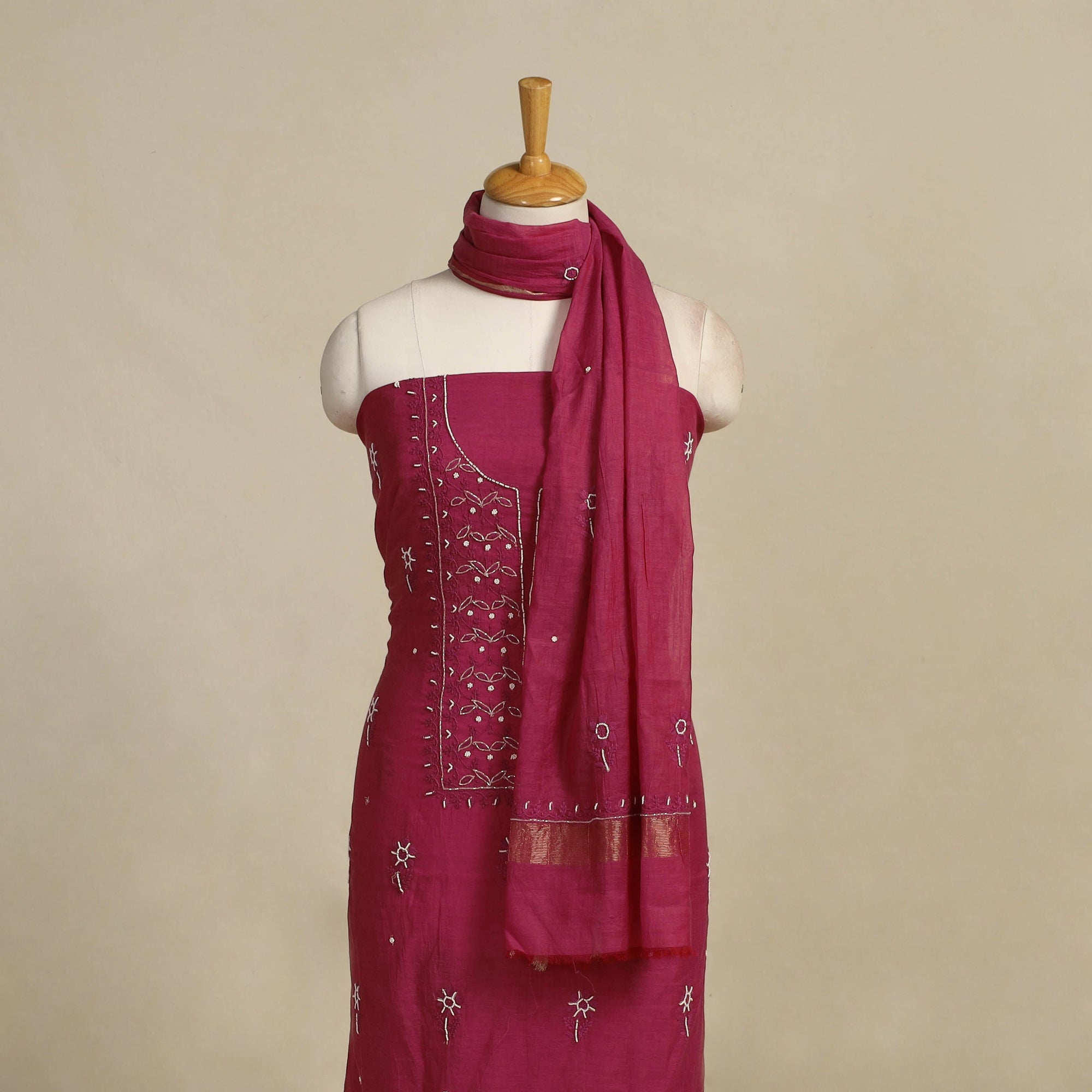 2pc pink chikankari dress material set includes a beautifully hand-embroidered kurta with a matching dupatta, both crafted in chanderi silk x mul cotton. The dupatta is enhanced with delicate zari borders and tassels. Chikankari, a traditional embroidery art from Lucknow, showcases fine craftsmanship and cultural heritage.
