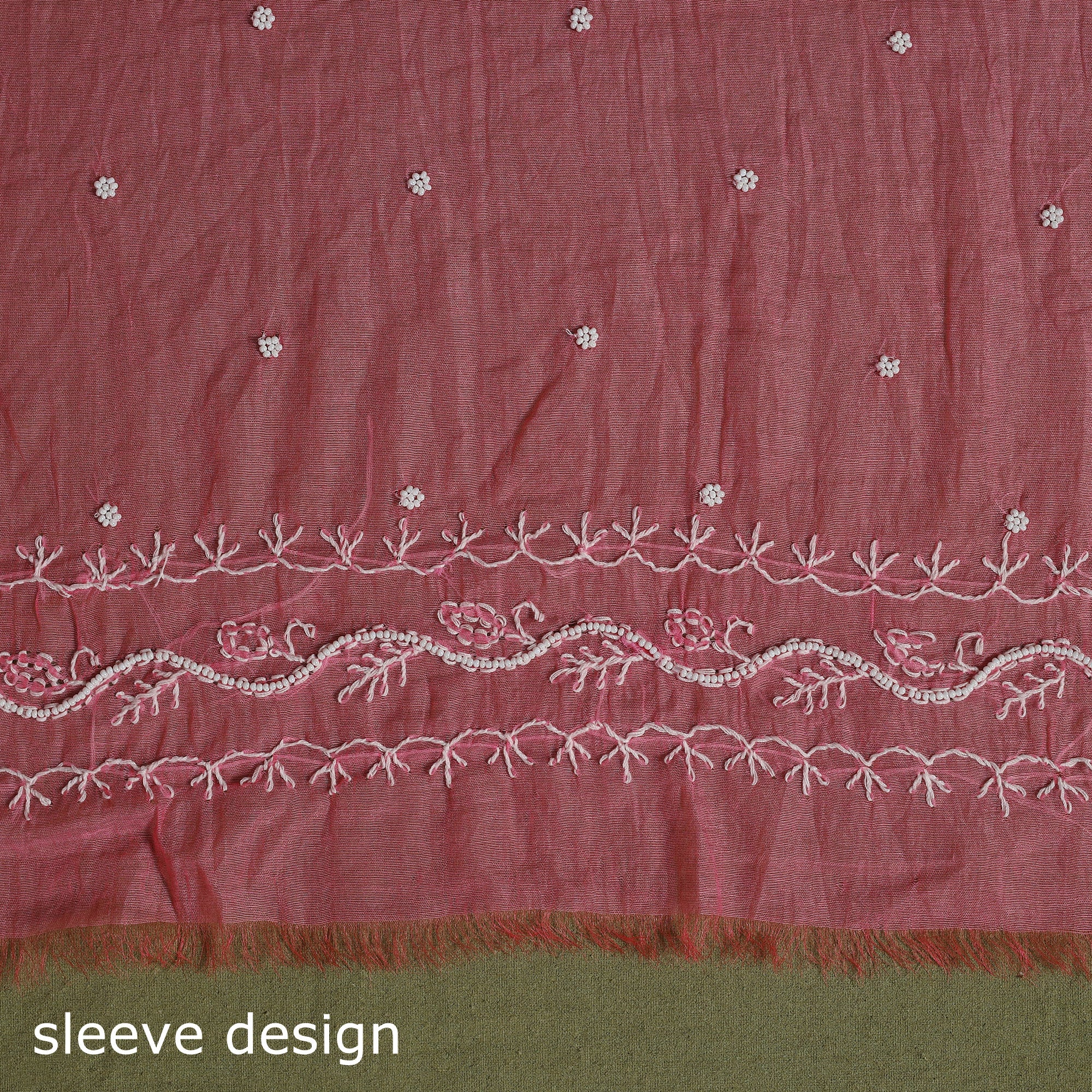 2pc pink chikankari dress material set includes a beautifully hand-embroidered kurta with a matching dupatta, both crafted in chanderi silk x mul cotton. The dupatta is enhanced with delicate zari borders and tassels. Chikankari, a traditional embroidery art from Lucknow, showcases fine craftsmanship and cultural heritage.
