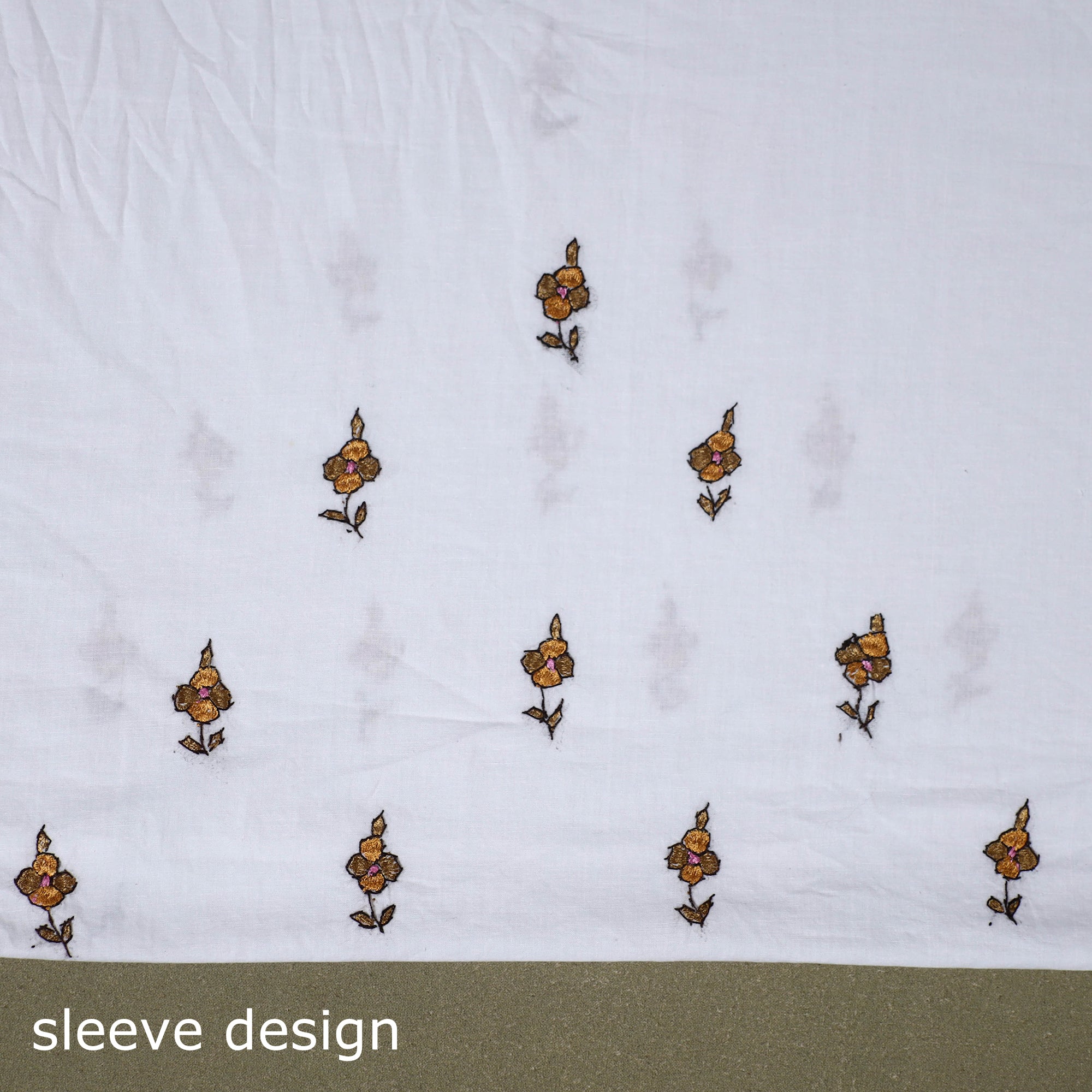 • White Hand Embroidery Cotton Kashida Kurta Material