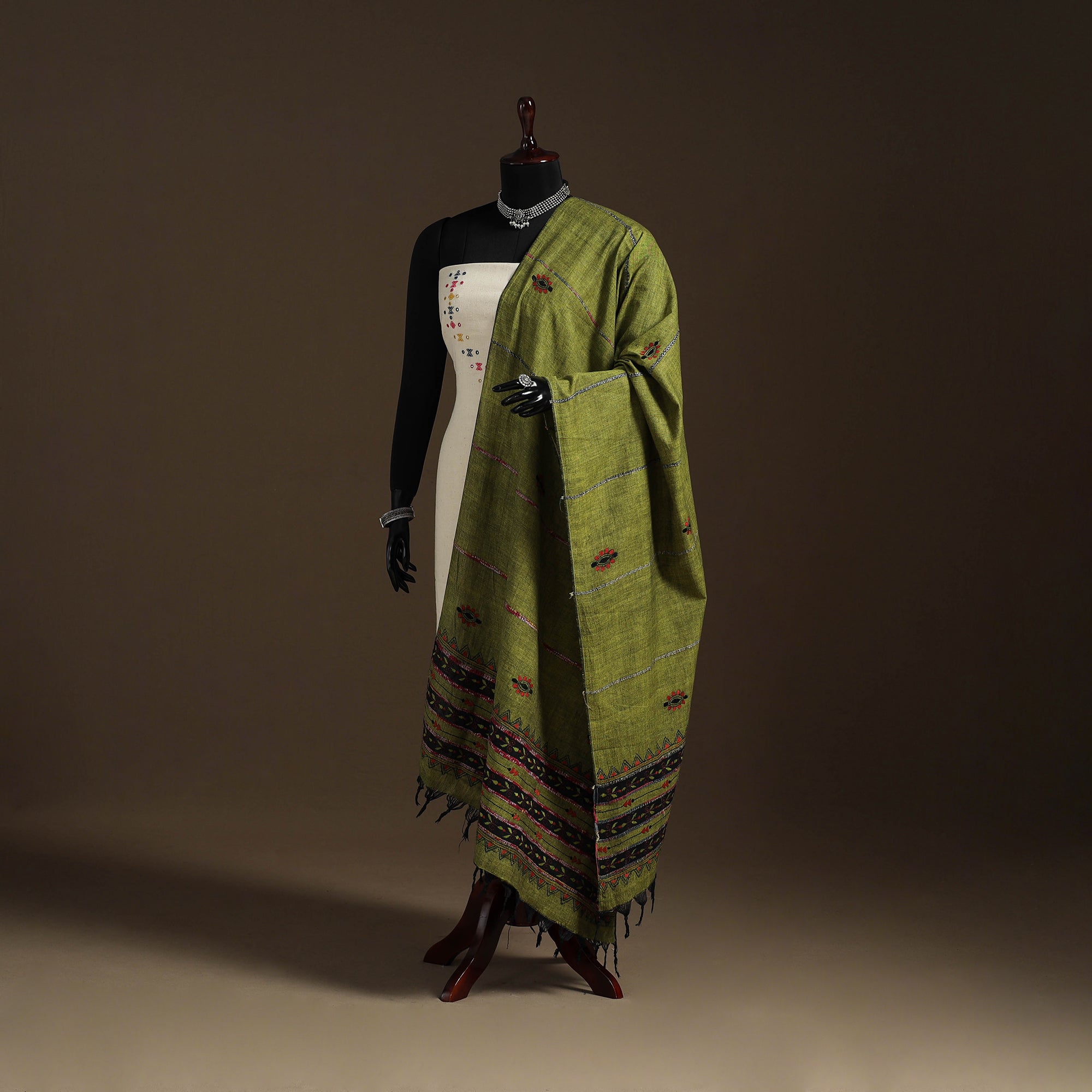 • Green Hand Embroidery Khes Handwoven Cotton Kantha Dupatta