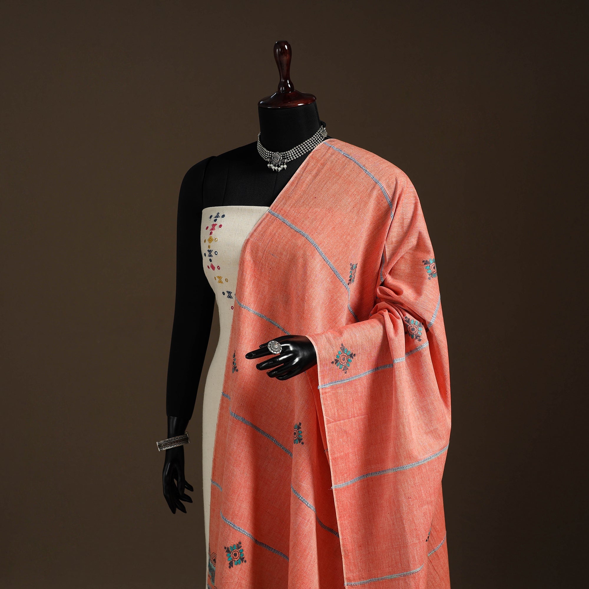 beautiful motifs. Each piece narrates a story, celebrating cultural heritage, sustainability, and artisanal charm. Lightweight and breathable, this dupatta is ideal for both daily wear and festive styling.