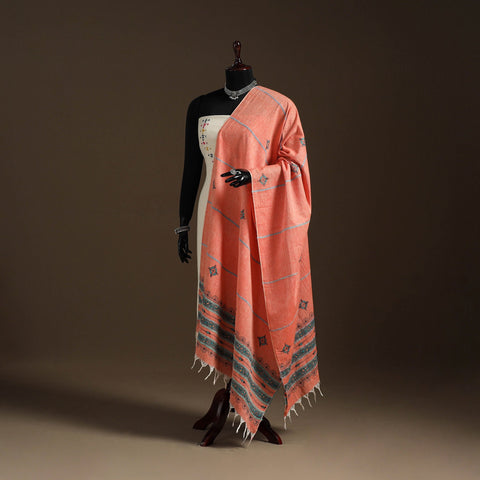 • Peach - Hand Embroidery Khes Handwoven Cotton Kantha Dupatta 24