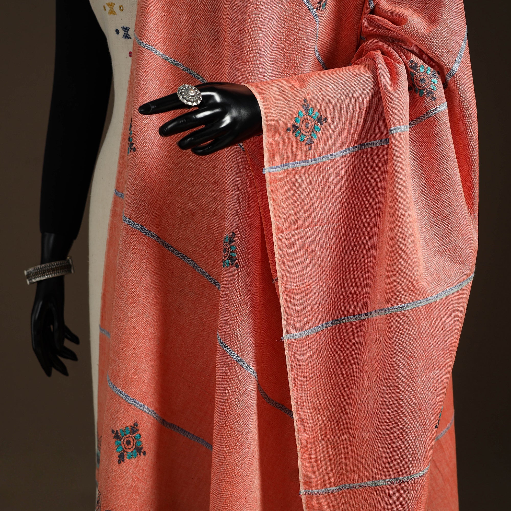 • Peach - hand embroidery khes handwoven cotton kantha