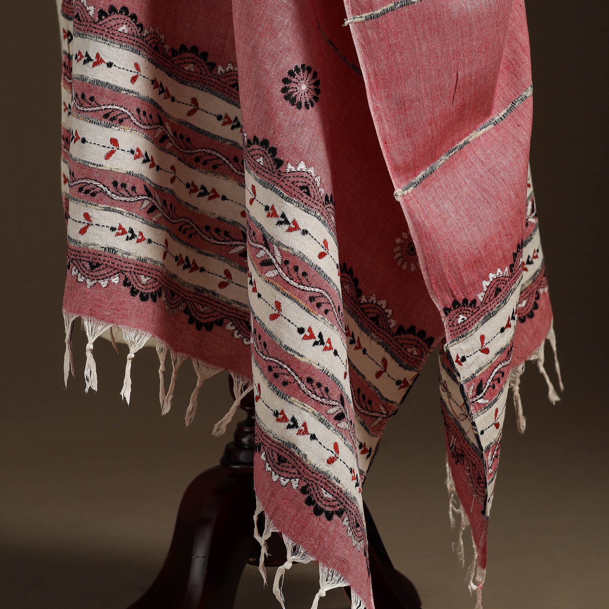 Pink - Hand Embroidery Khes Handwoven Cotton Kantha Dupatta 26