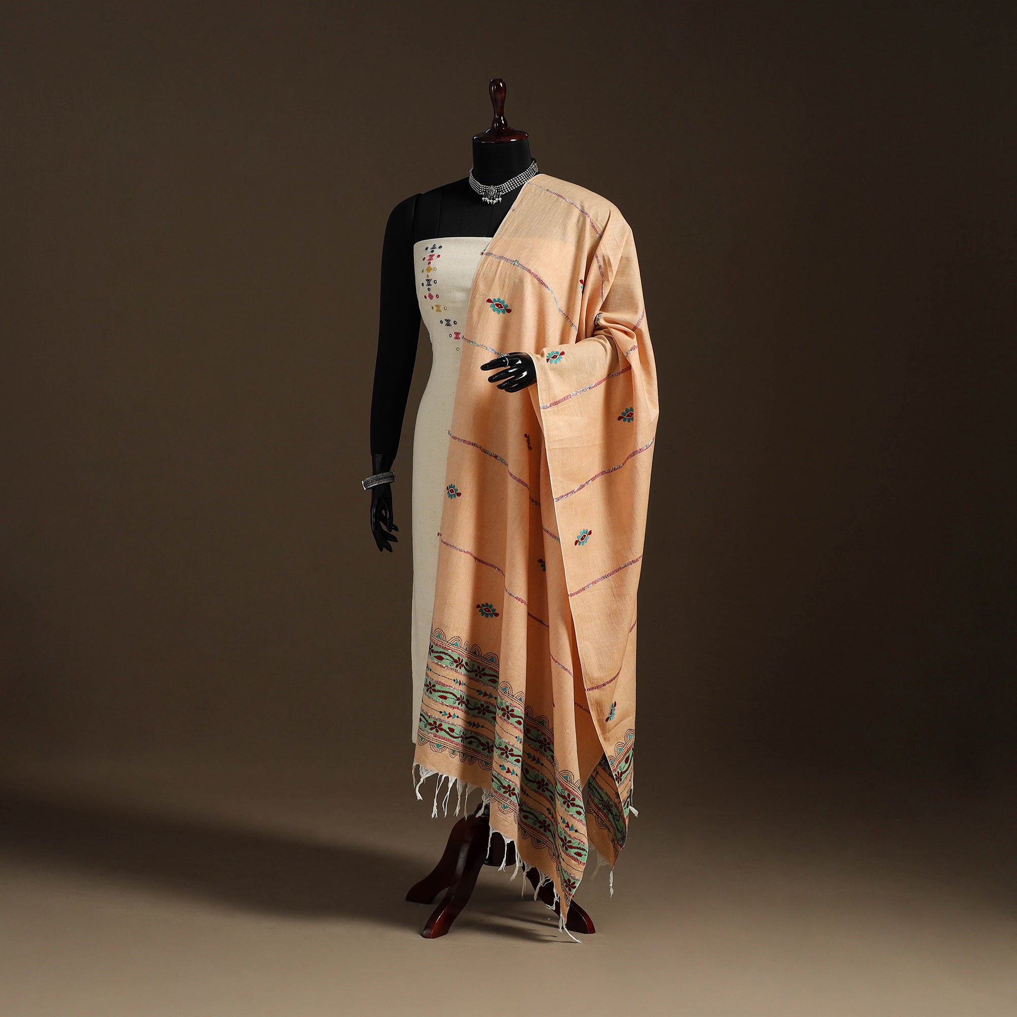 Peach - Hand Embroidery Khes Handwoven Cotton Kantha Dupatta 44