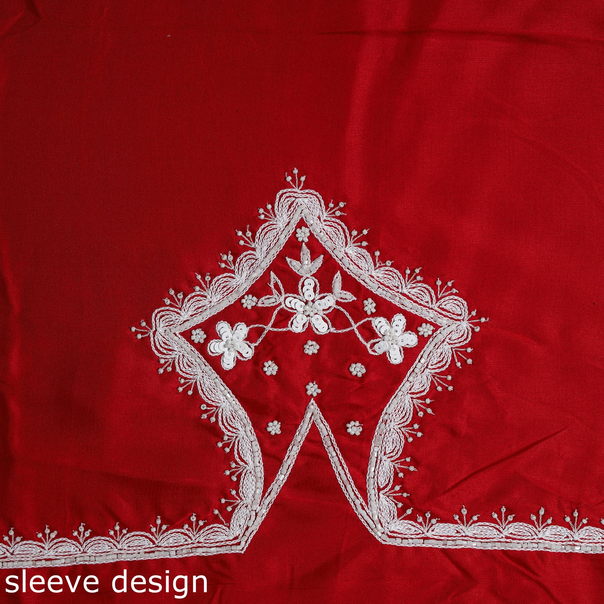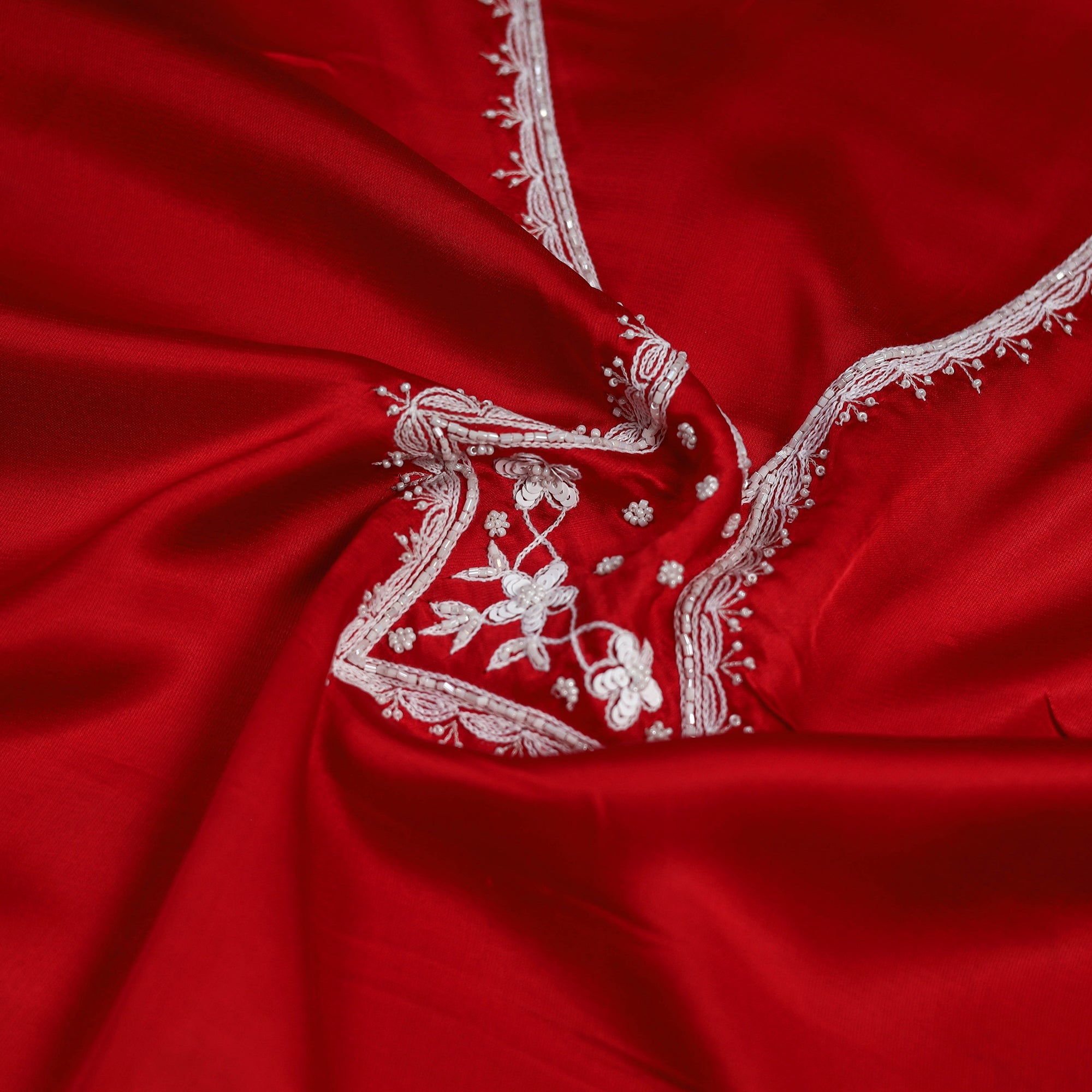 Elevate your wardrobe with this stunning modal silk red kurta fabric, adorned with fine hand embroidery. The silk's luxurious fall and the artist’s delicate detailing create a canvas of tradition and elegance perfect for crafting refined kurtas and festive or statement pieces that reflect timeless style and personal flair.