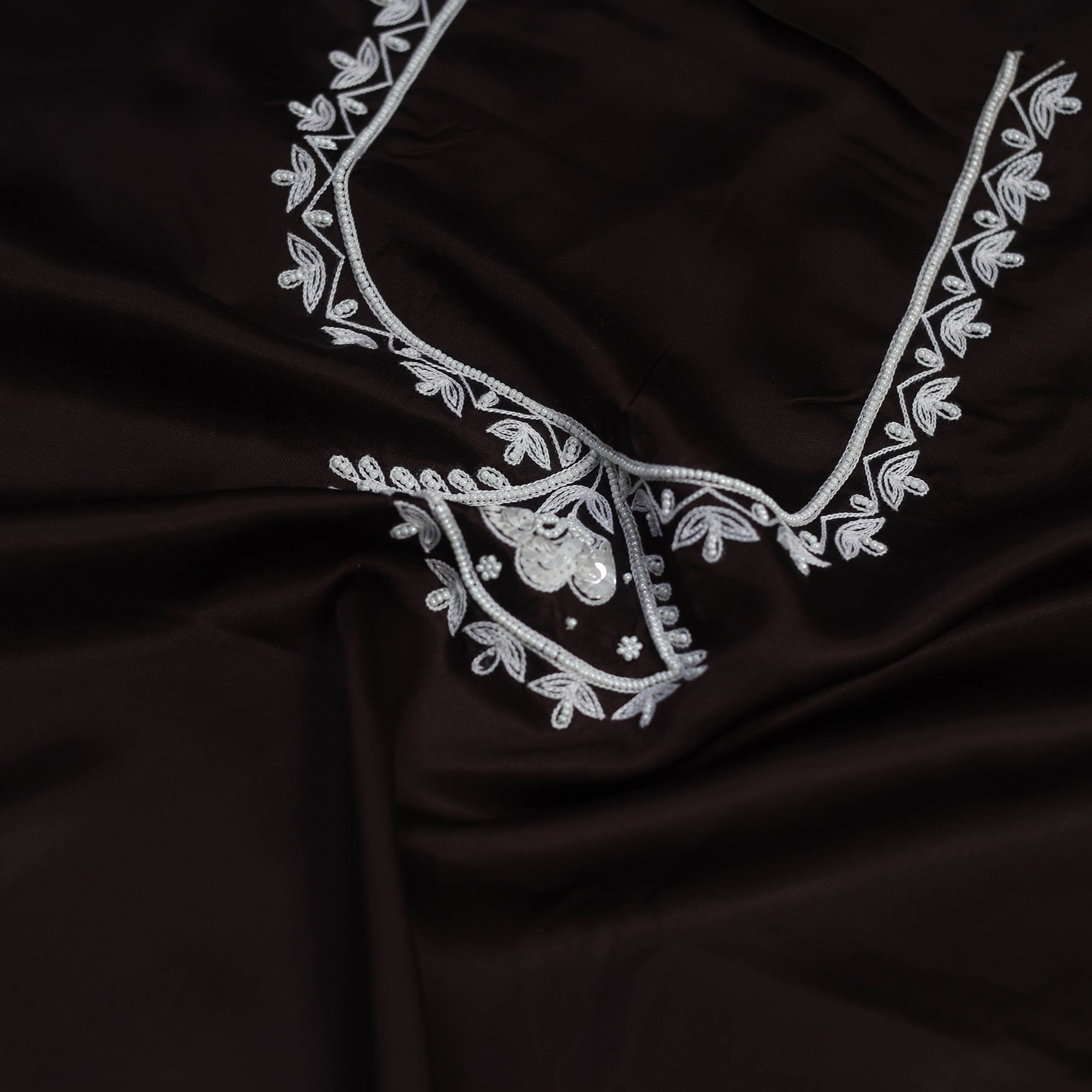 Elevate your wardrobe with this stunning modal silk brown kurta fabric, adorned with fine hand embroidery. The silk's luxurious fall and the artist’s delicate detailing create a canvas of tradition and elegance perfect for crafting refined kurtas and festive or statement pieces that reflect timeless style and personal flair.