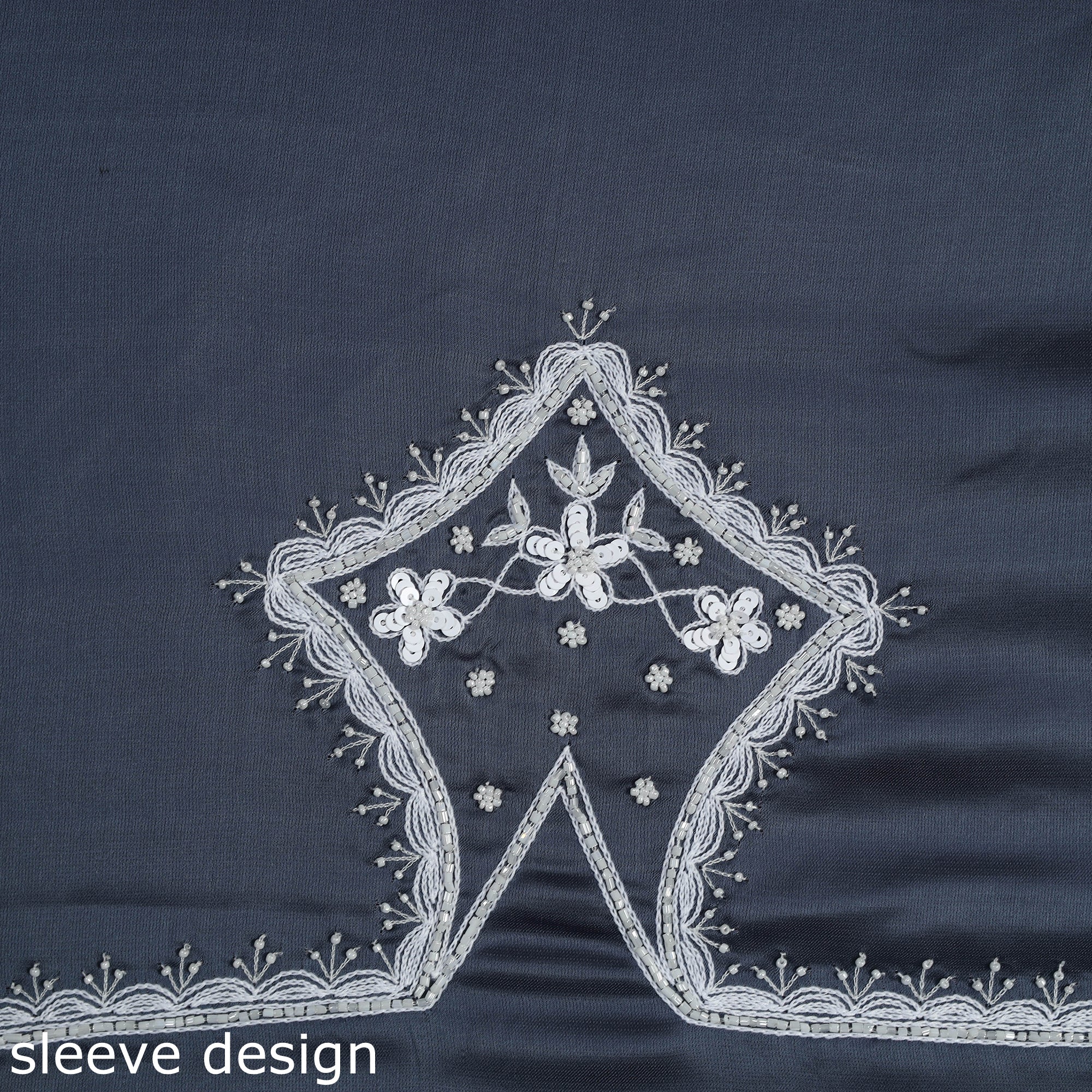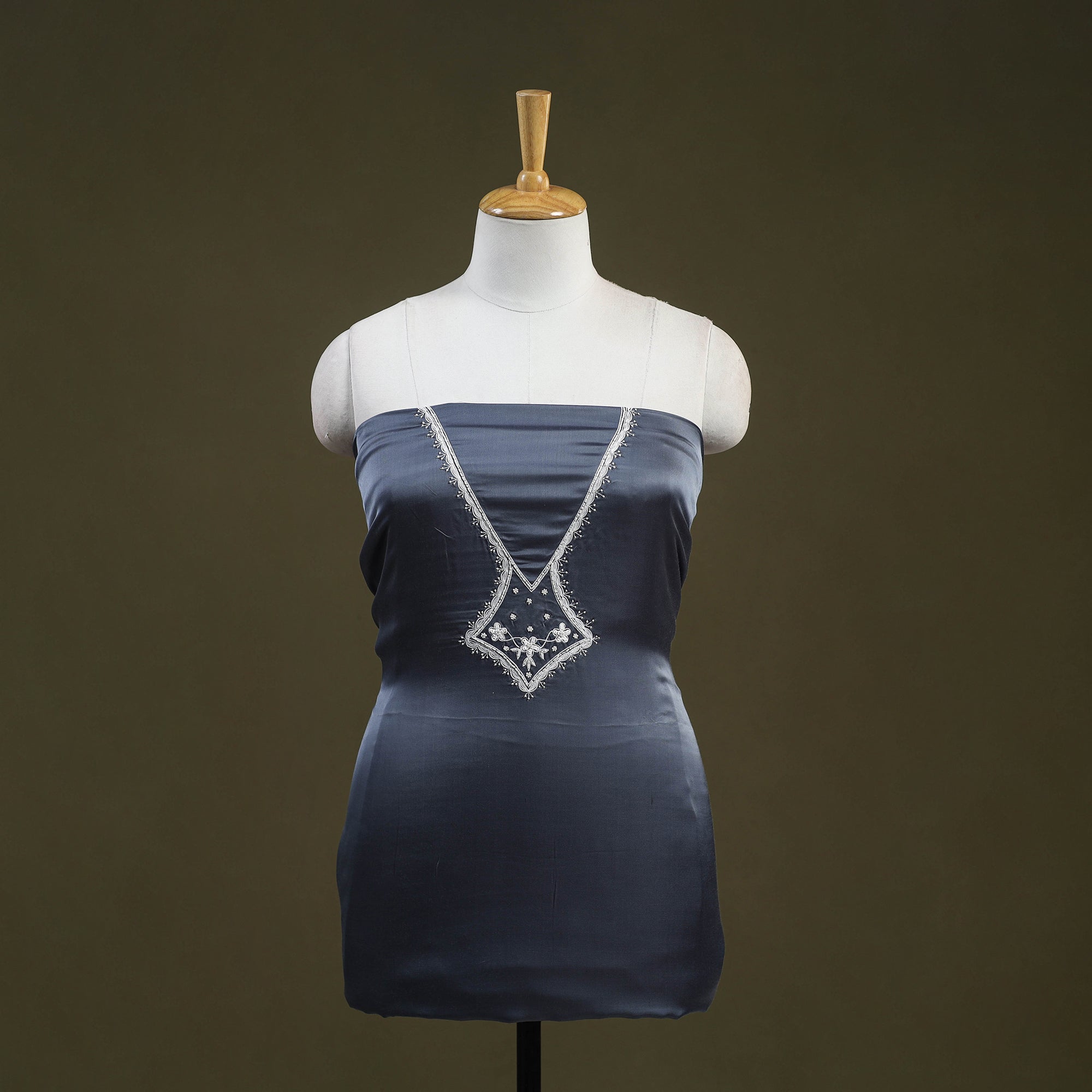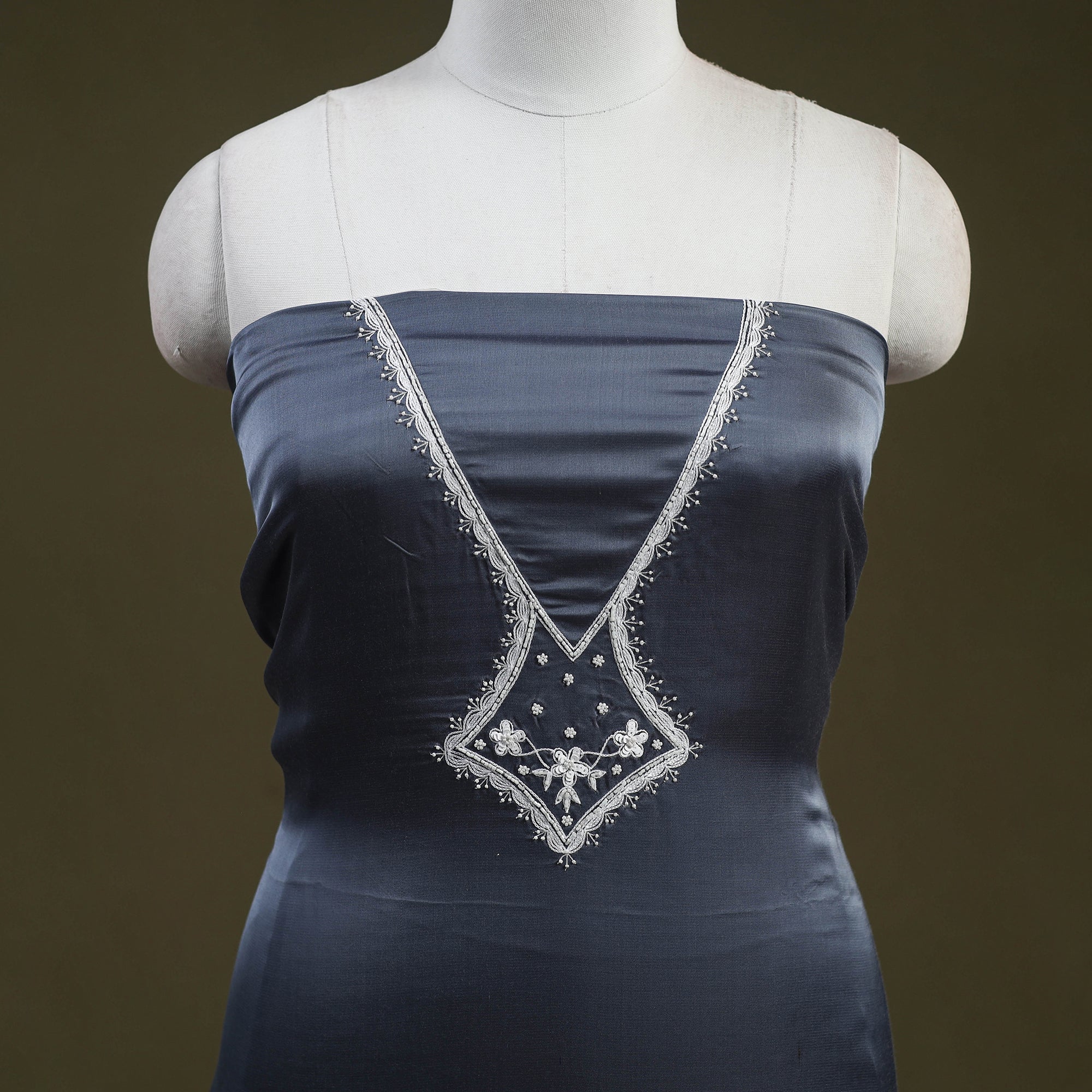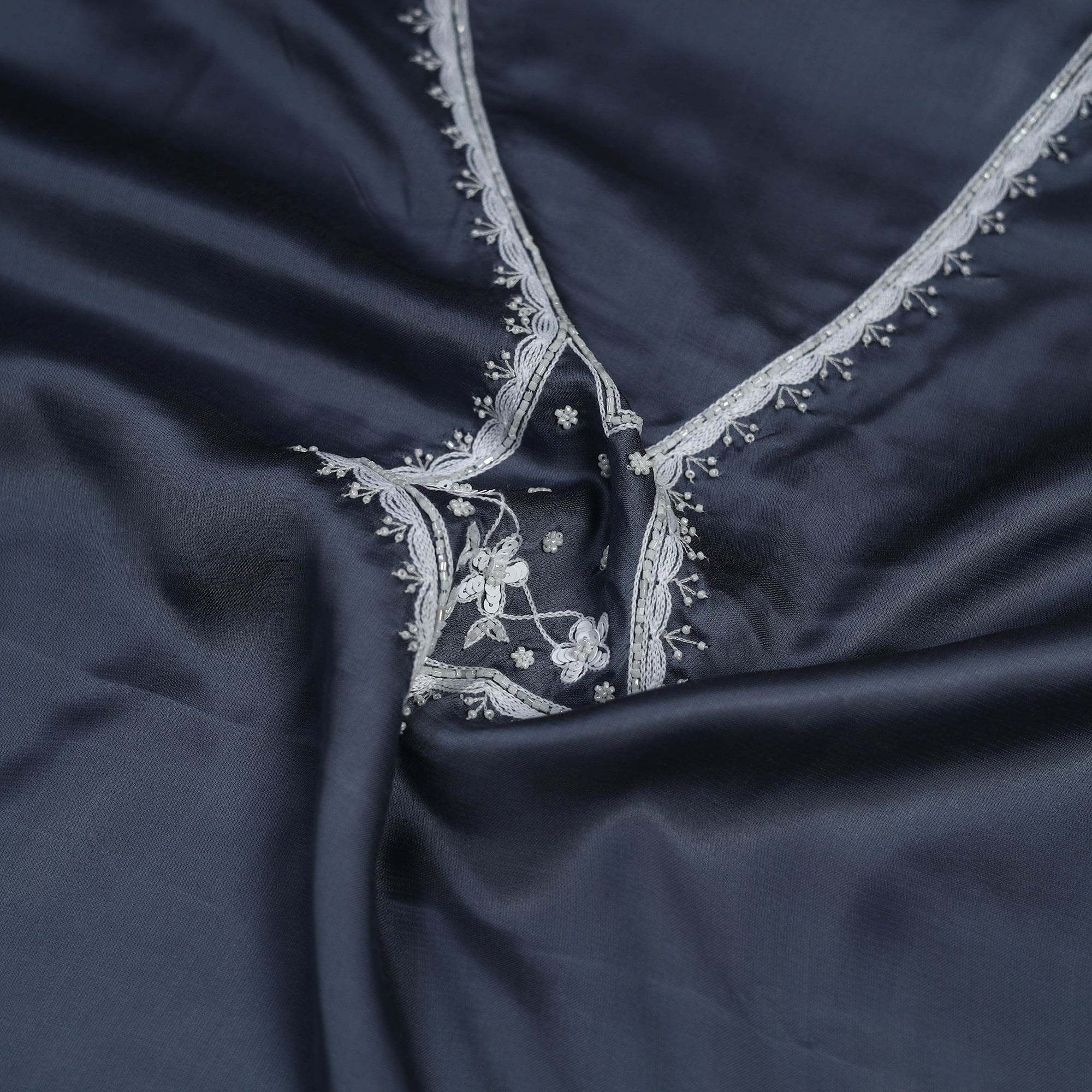 Elevate your wardrobe with this stunning grey modal silk kurta fabric, adorned with fine hand embroidery. The silk's luxurious fall and the artist’s delicate detailing create a canvas of tradition and elegance perfect for crafting refined kurtas and festive or statement pieces that reflect timeless style and personal flair.