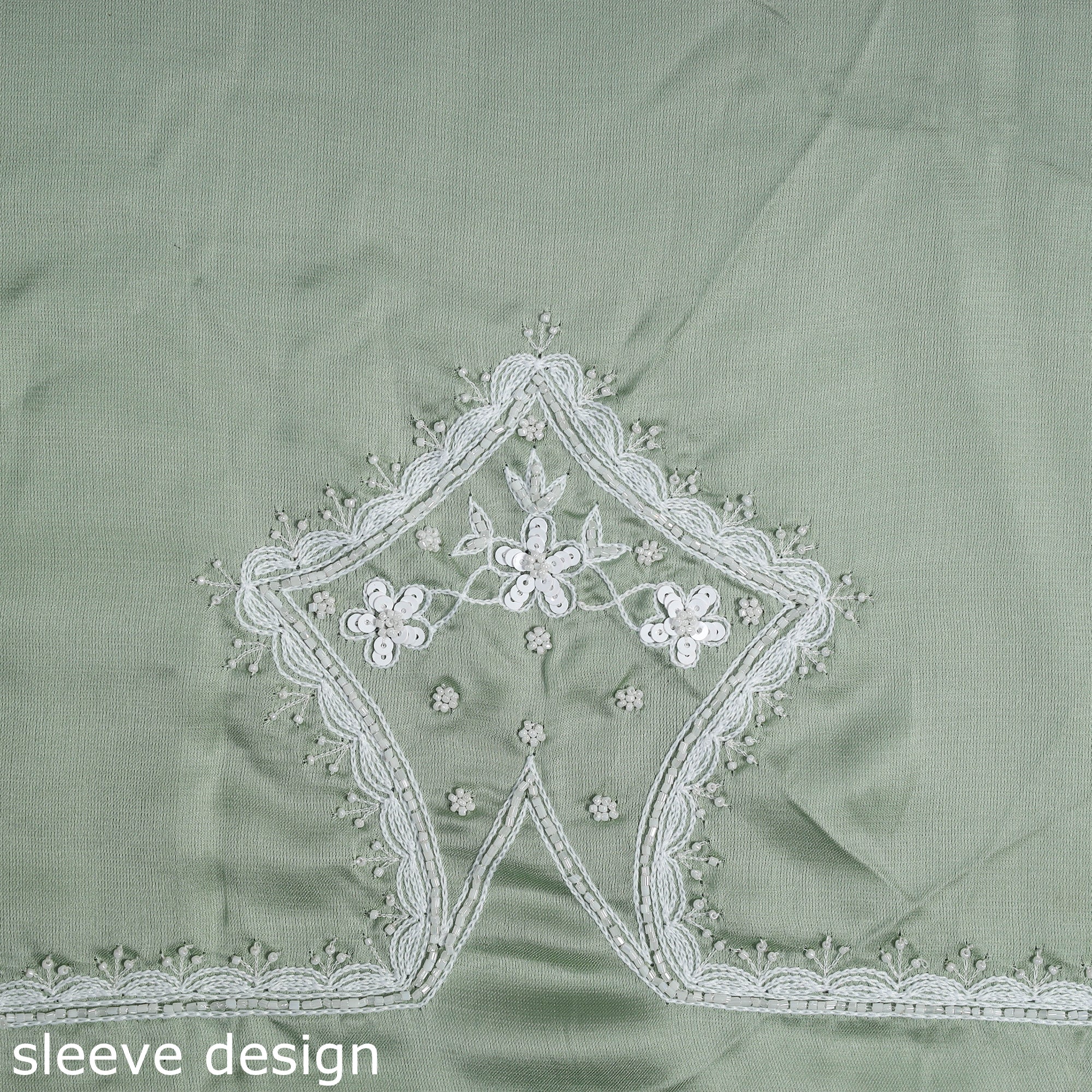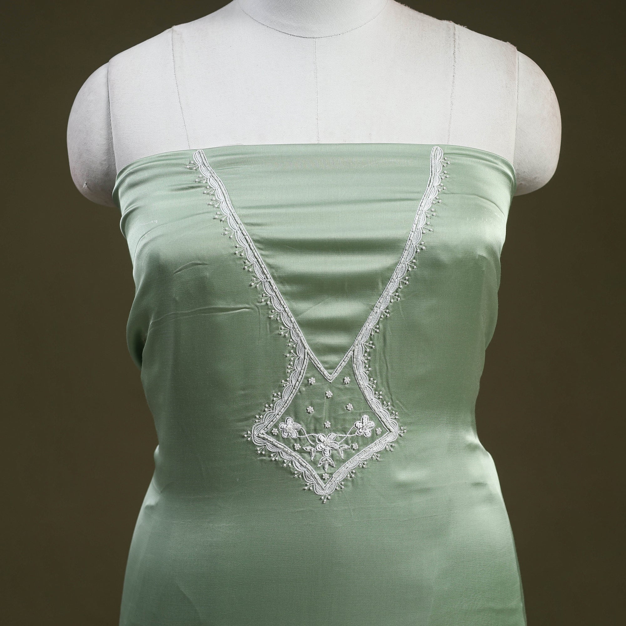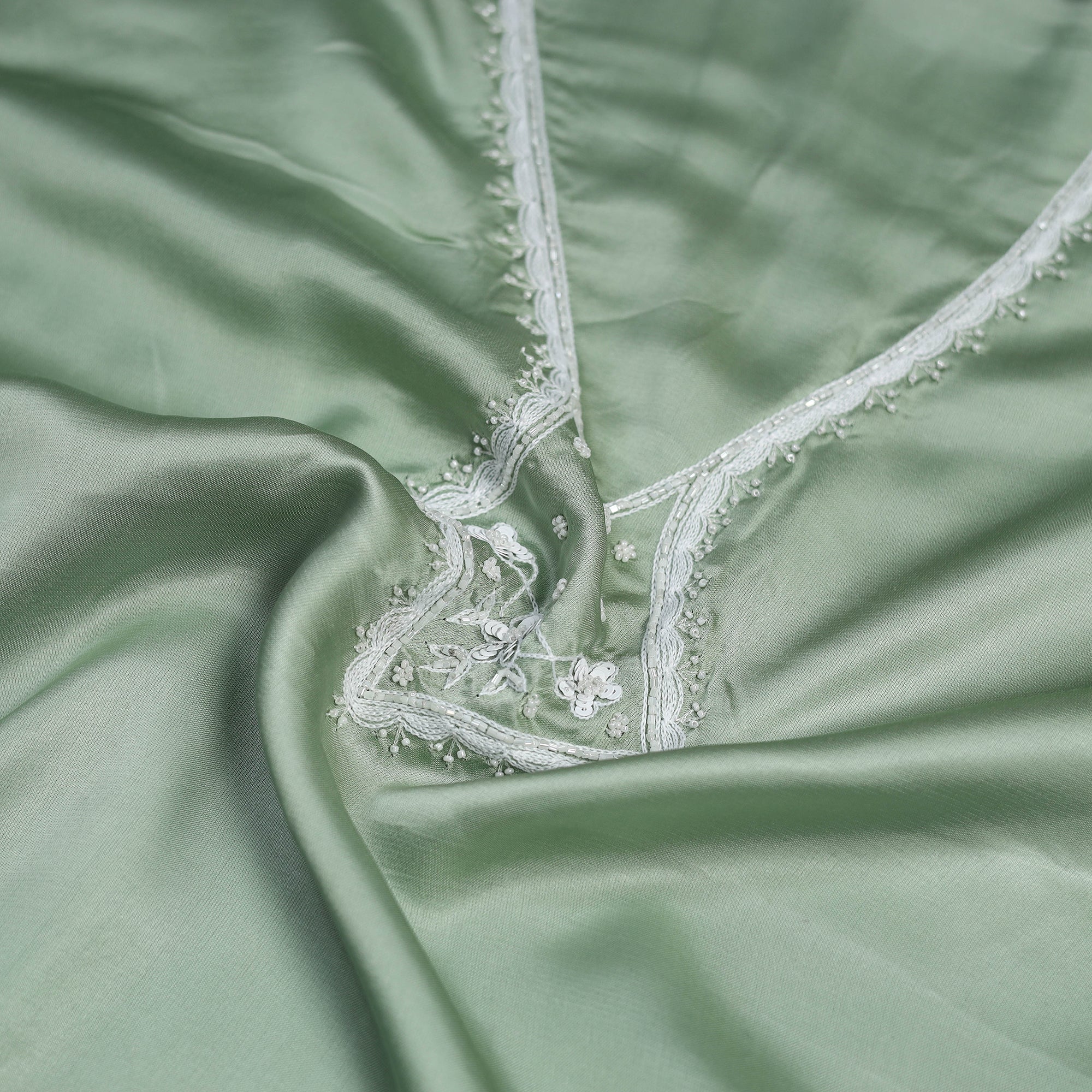 Elevate your wardrobe with this stunning light green modal silk kurta fabric, adorned with fine hand embroidery. The silk's luxurious fall and the artist’s delicate detailing create a canvas of tradition and elegance perfect for crafting refined kurtas and festive or statement pieces that reflect timeless style and personal flair.