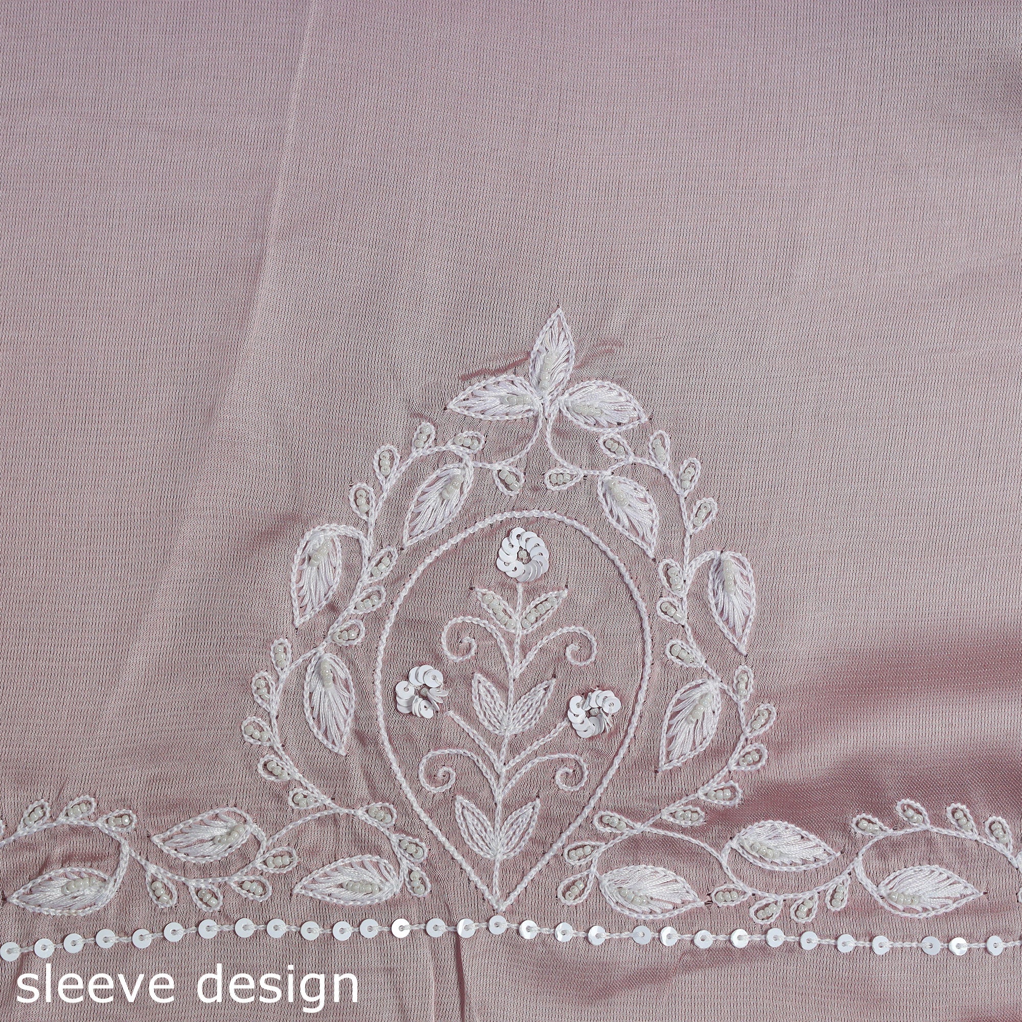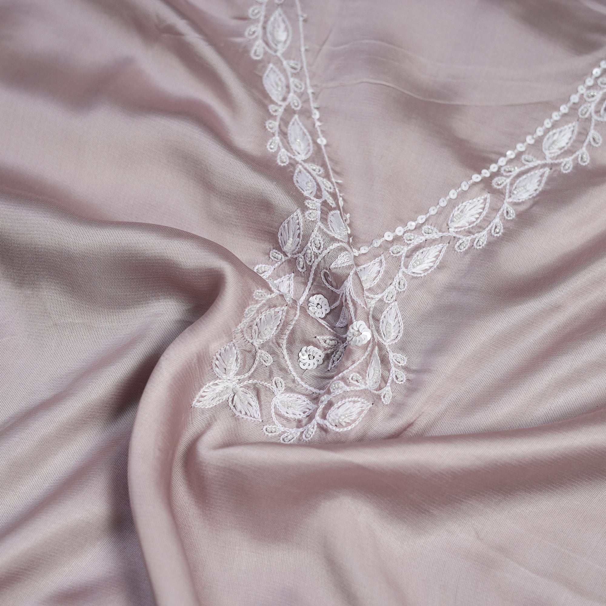 Elevate your wardrobe with this stunning modal silk pink kurta fabric, adorned with fine hand embroidery. The silk's luxurious fall and the artist’s delicate detailing create a canvas of tradition and elegance perfect for crafting refined kurtas and festive or statement pieces that reflect timeless style and personal flair.