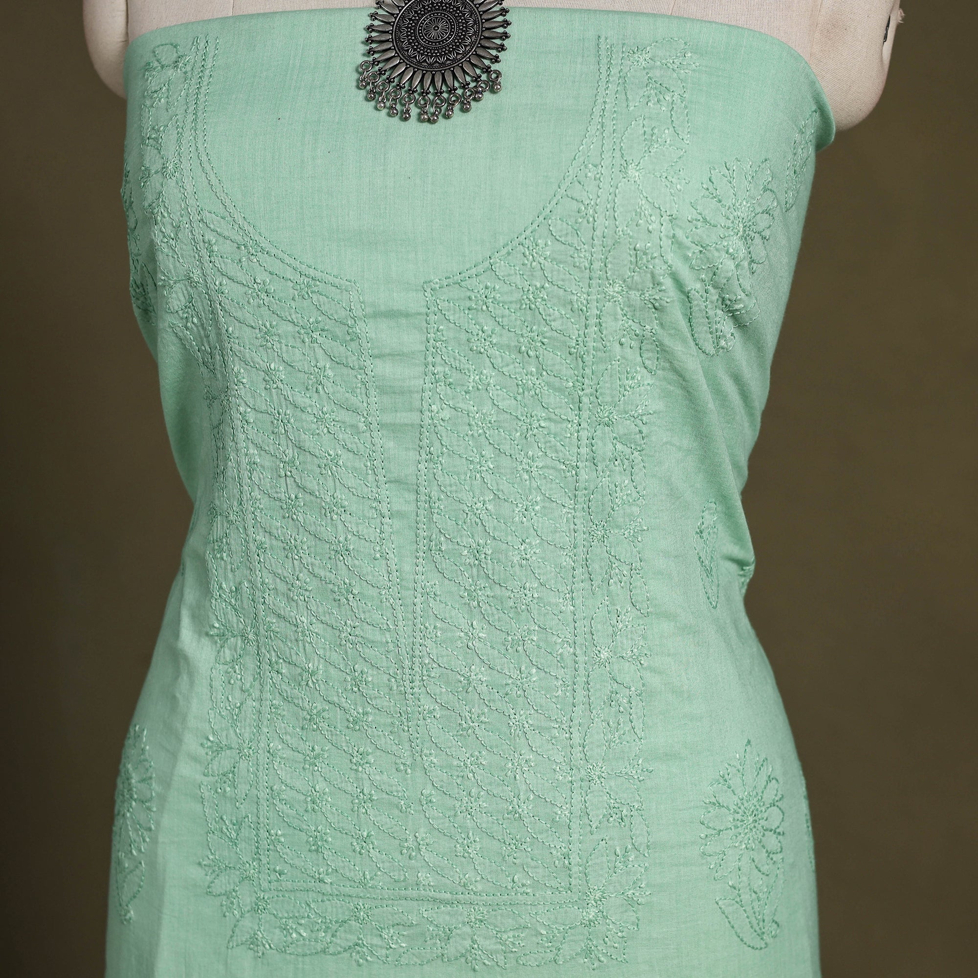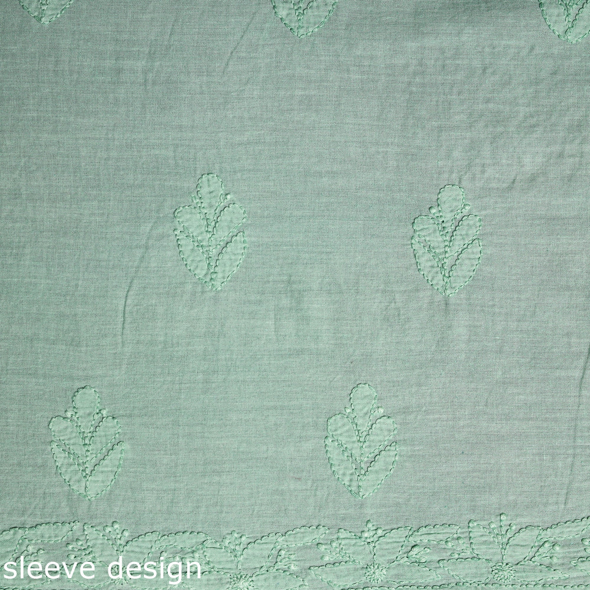 Upgrade your everyday style with our green hand-embroidery mul cotton chikankari kurta material. This suit features delicate hand-embroidered patterns crafted by skilled artisans. Perfect for both festive and casual occasions, this timeless ensemble reflects the rich cultural heritage of chikankari.