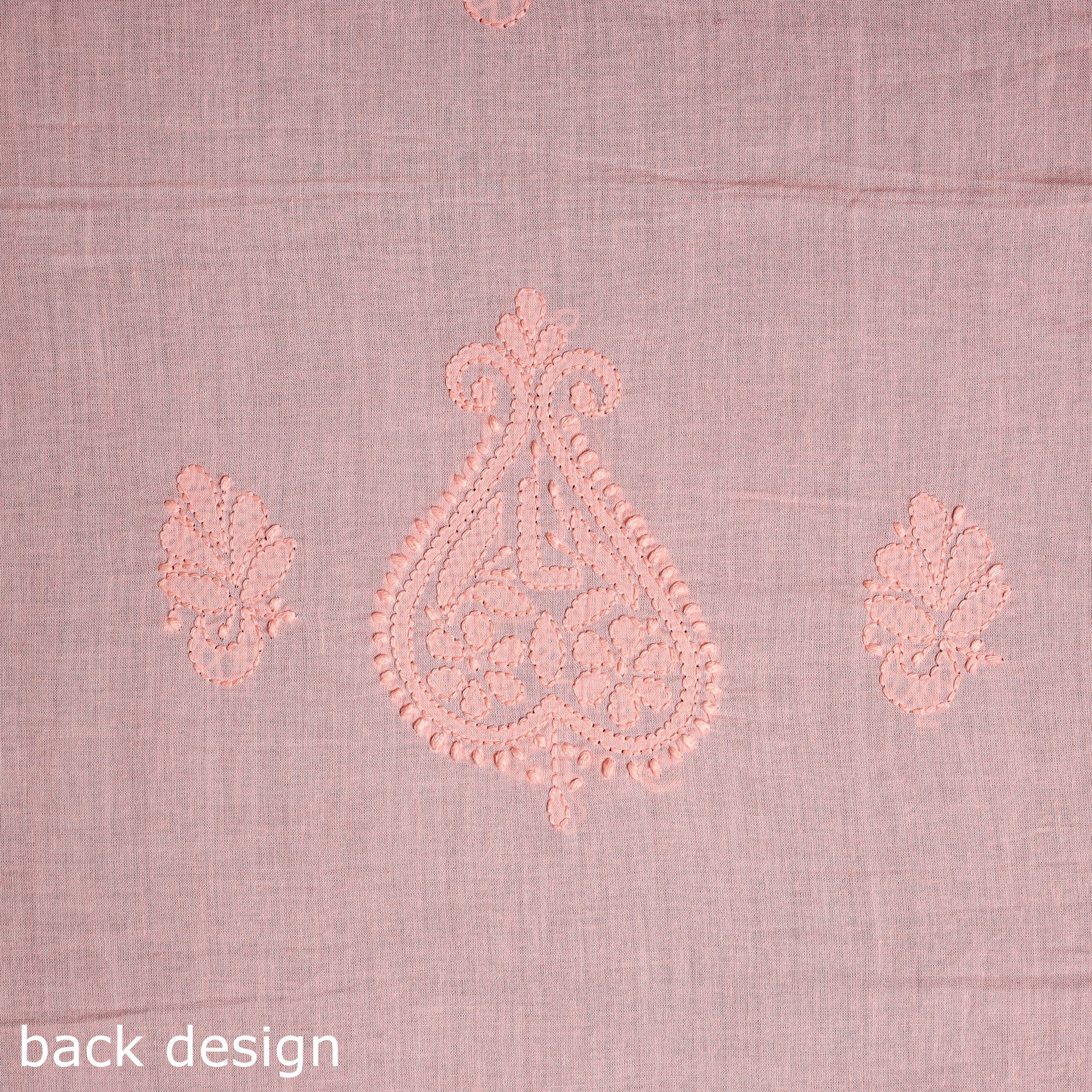 Upgrade your everyday style with our peach hand-embroidery mul cotton chikankari kurta material. This suit features delicate hand-embroidered patterns crafted by skilled artisans. Perfect for both festive and casual occasions, this timeless ensemble reflects the rich cultural heritage of chikankari.