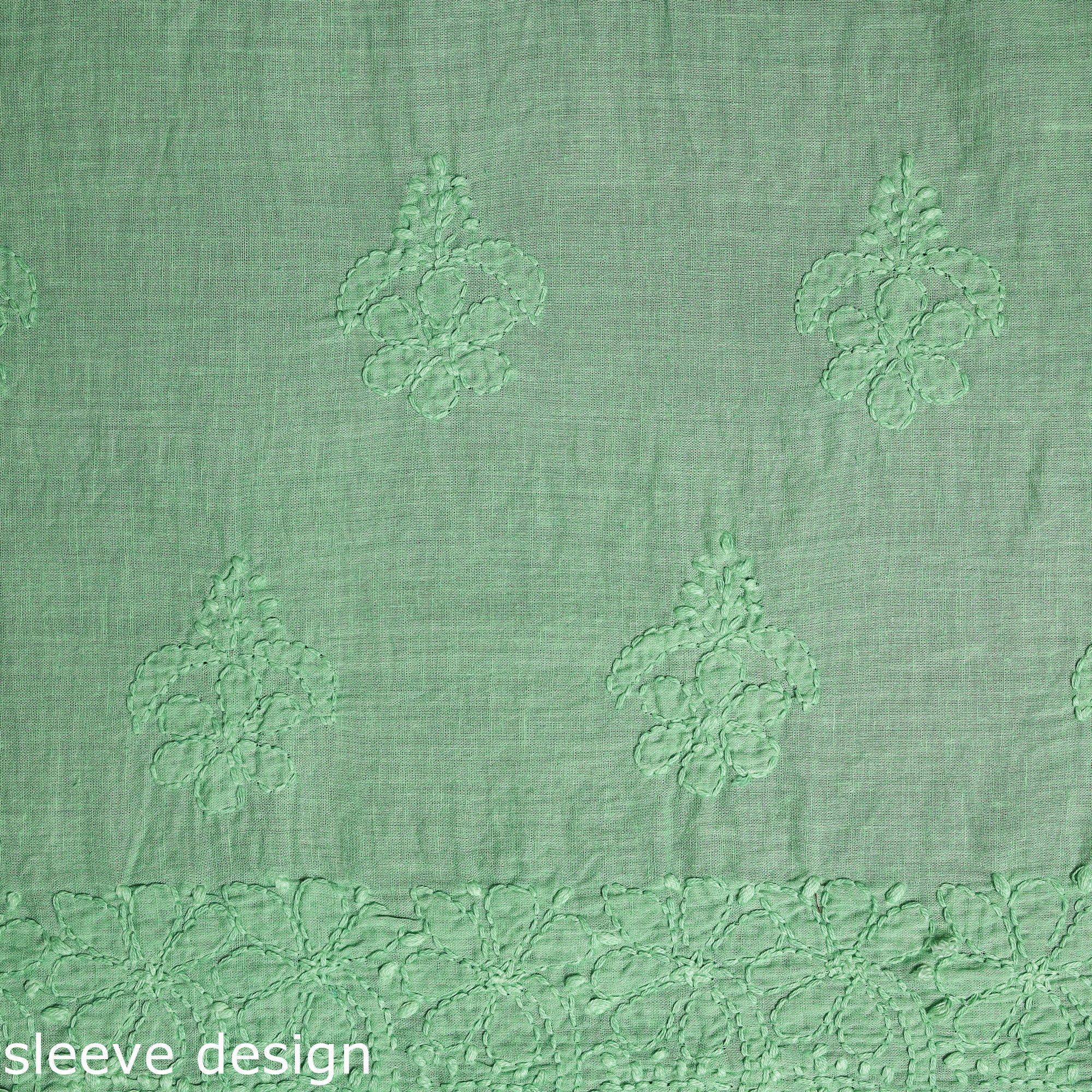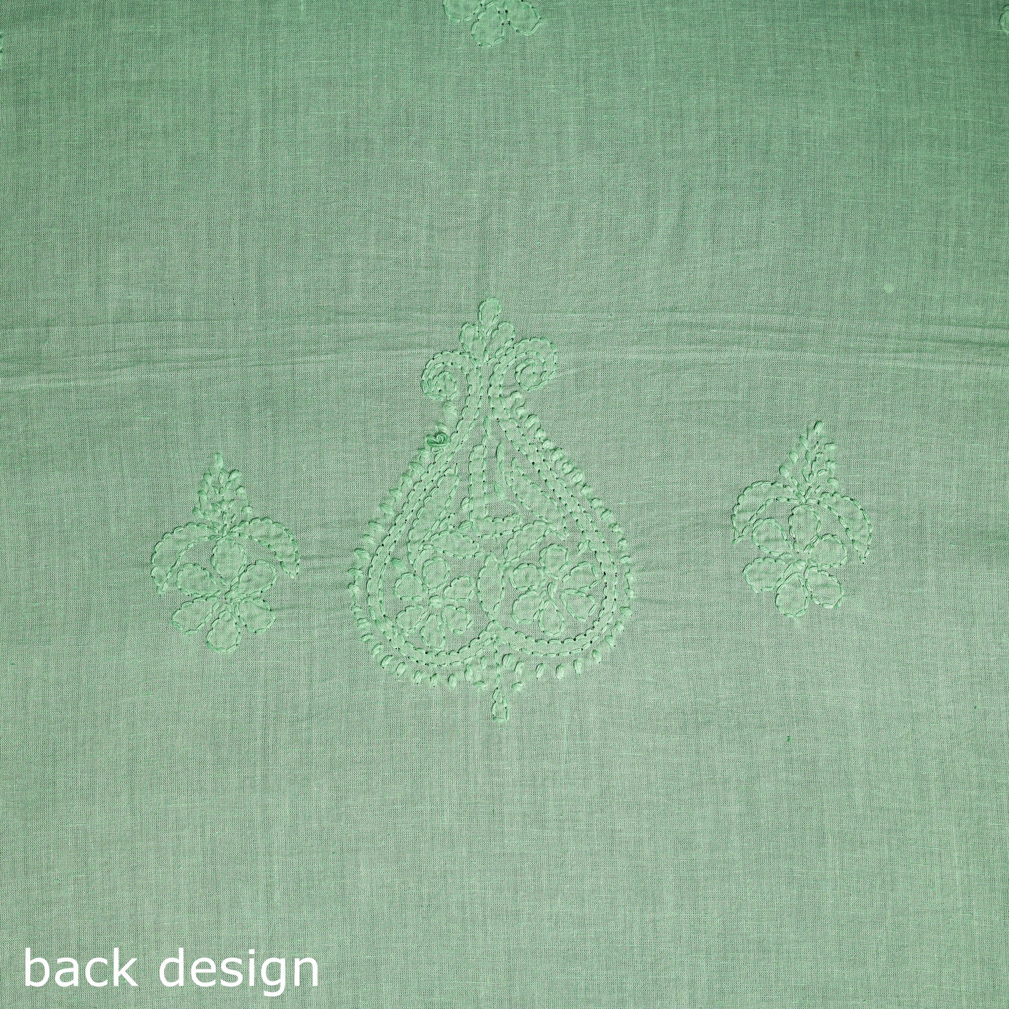 Upgrade your everyday style with our green hand-embroidery mul cotton chikankari kurta material. This suit features delicate hand-embroidered patterns crafted by skilled artisans. Perfect for both festive and casual occasions, this timeless ensemble reflects the rich cultural heritage of chikankari.