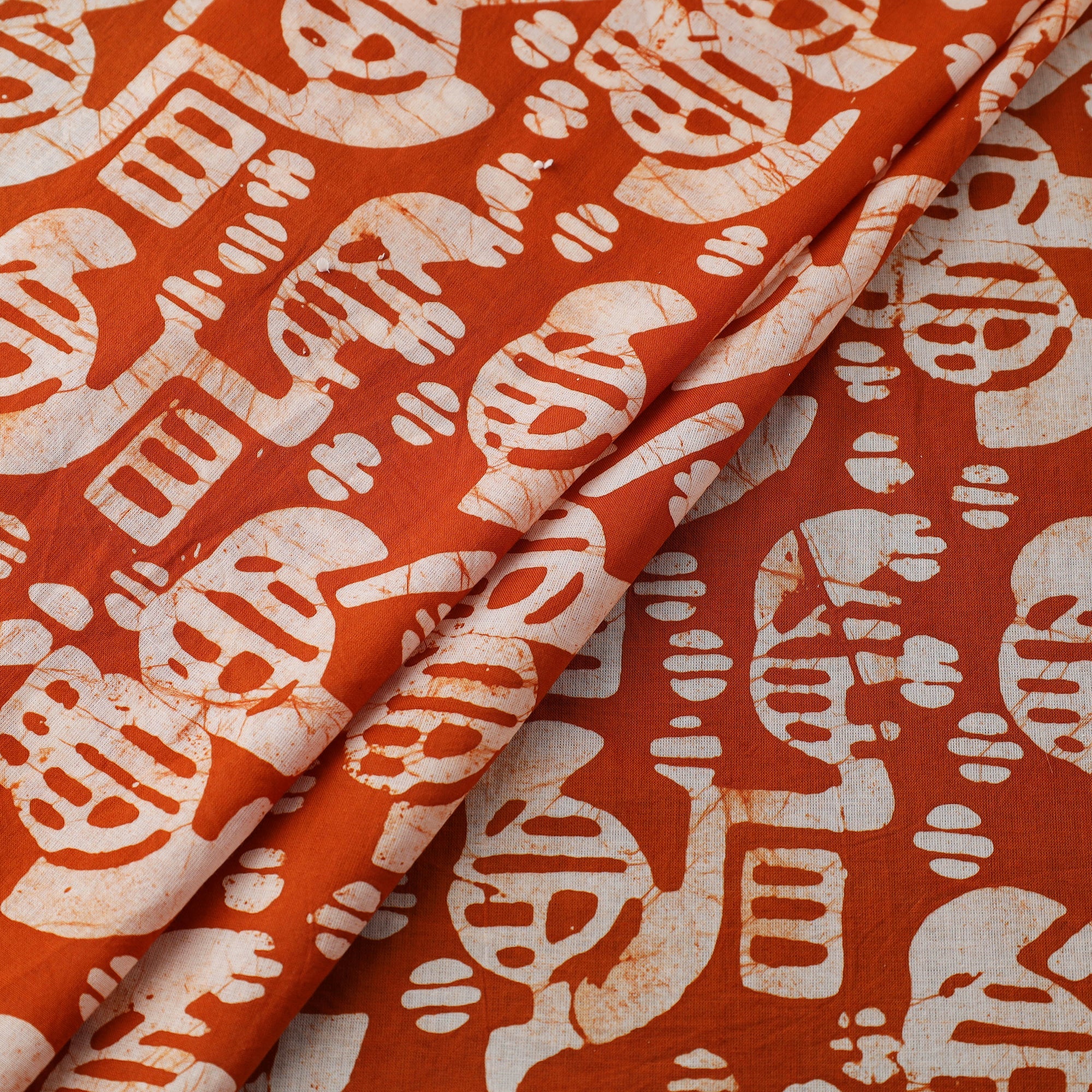 This fine quality orange pure cotton fabric is hand batik printed, showcasing the beautiful and traditional wax-resist dyeing technique. The intricate designs and motifs are a testament to the skill and expertise of Indian artisans, who have been passing down these techniques from generation to generation. With its unique patterns and high-quality material, this fabric is perfect for creating stunning and timeless garments and home decor items.