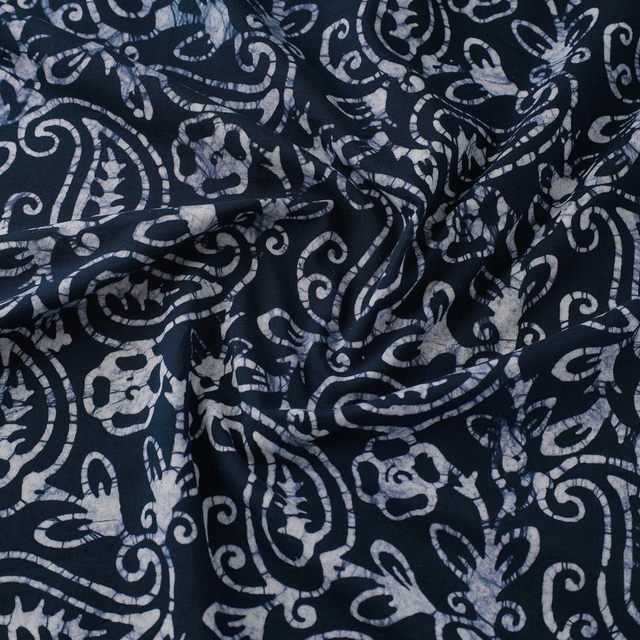 This fine quality blue pure cotton fabric is hand batik printed, showcasing the beautiful and traditional wax-resist dyeing technique. The intricate designs and motifs are a testament to the skill and expertise of Indian artisans, who have been passing down these techniques from generation to generation. With its unique patterns and high-quality material, this fabric is perfect for creating stunning and timeless garments and home decor items.