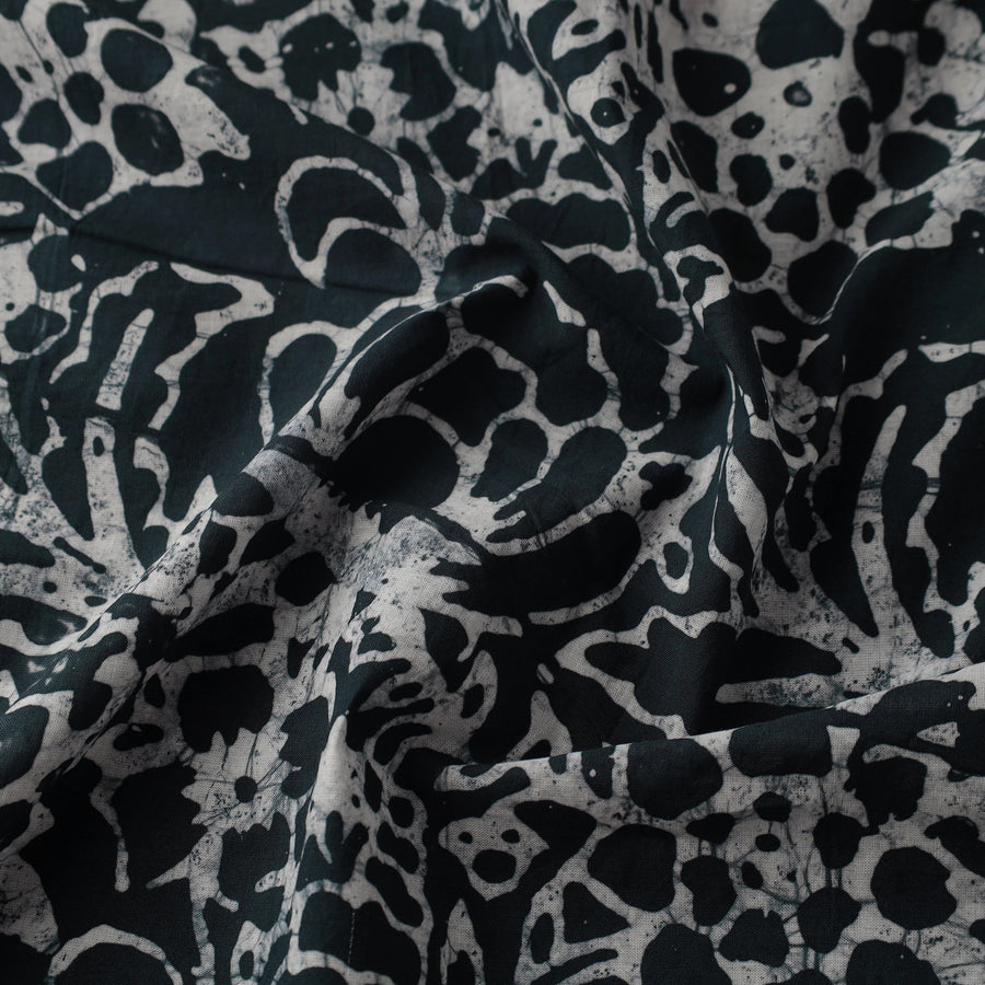 This fine quality black pure cotton fabric is hand batik printed, showcasing the beautiful and traditional wax-resist dyeing technique. The intricate designs and motifs are a testament to the skill and expertise of Indian artisans, who have been passing down these techniques from generation to generation. With its unique patterns and high-quality material, this fabric is perfect for creating stunning and timeless garments and home decor items.