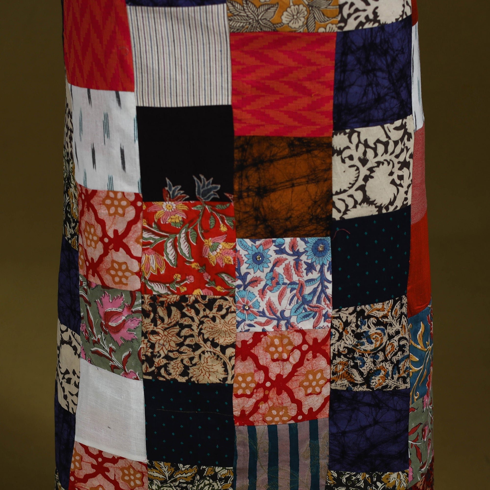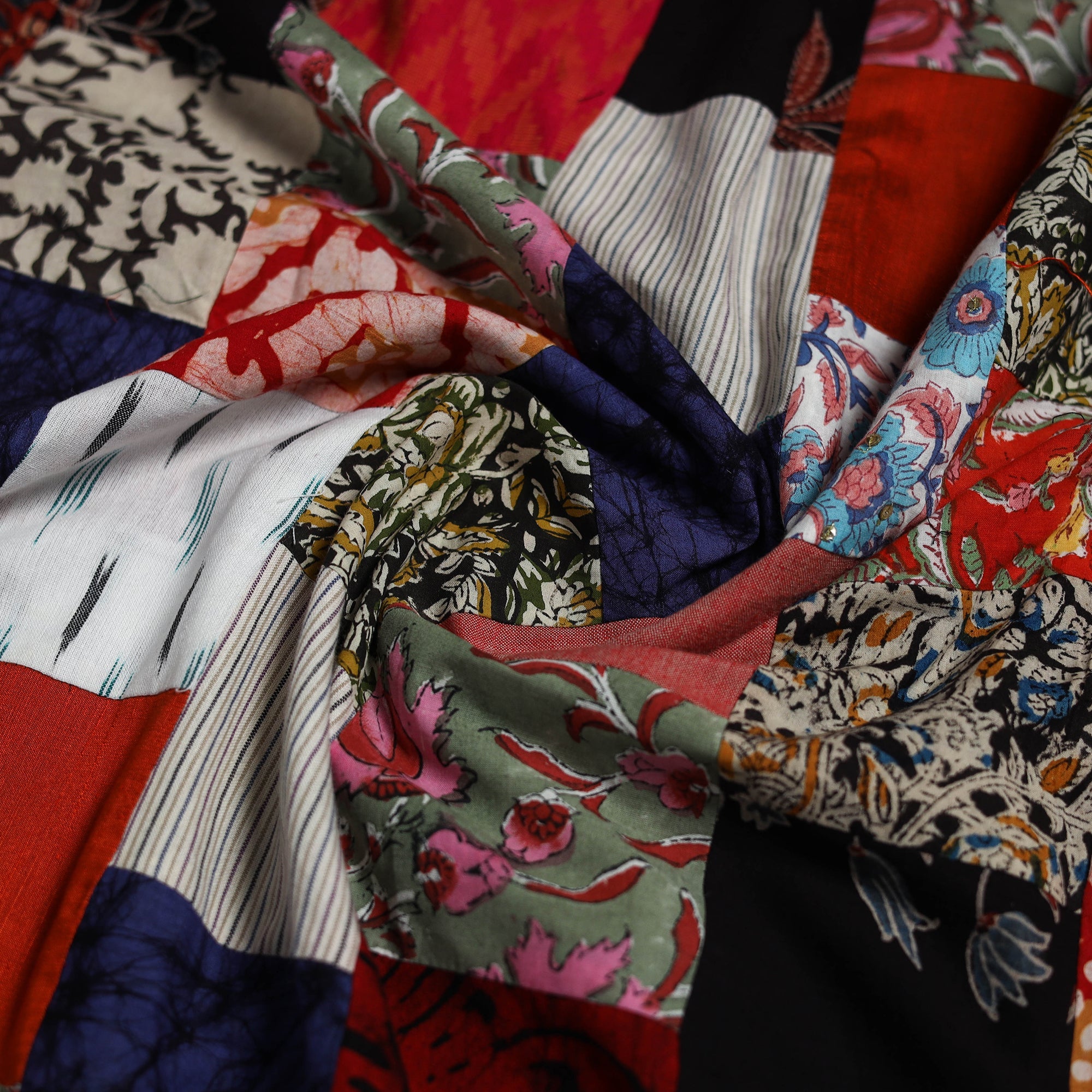 Hand-stitched mosaic cotton unstitched kurta material. Crafted using traditional tukdi (patchwork) techniques this fabric brings together unique textile pieces from various Indian crafts into one beautiful artistic design. Ideal for stitching kurtas, fusion tops or everyday tunics.