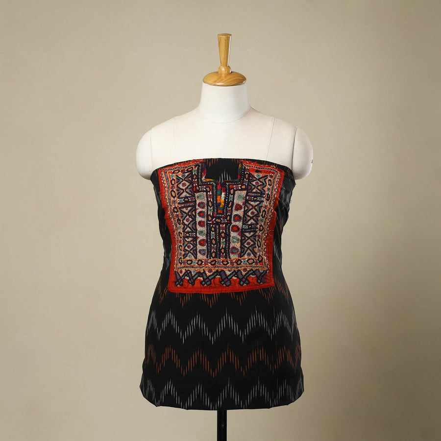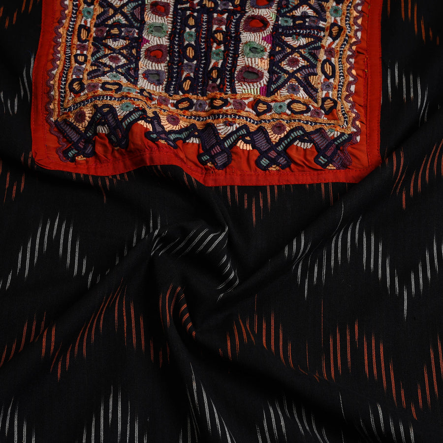 Experience the charm of intricately crafted kutch embroidery patchwork combined with pochampally Ikat in this elegant black kurta material, a true reflection of India’s rich textile heritage. This exquisite fabric showcases the art of resist dyeing, ensuring each piece is one of a kind. Made from soft, breathable cotton, it offers both comfort and style, making it perfect for creating custom ethnic or fusion ensembles..