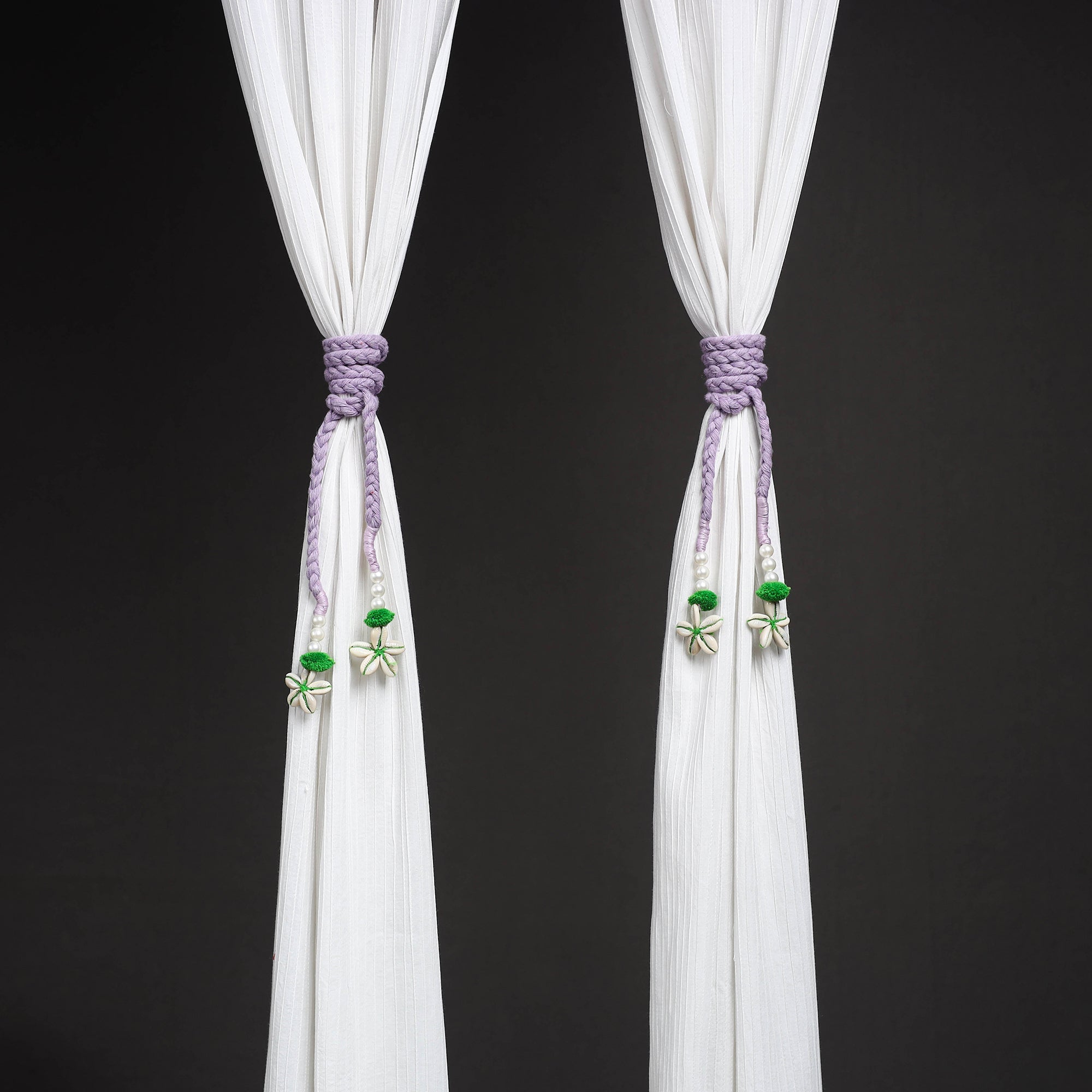 Add style and functionality to your home with this handcrafted bead work curtain tie backs set of 2. Featuring intricate detailing, theyre perfect for keeping curtains neatly in place while enhancing any room’s look. Lightweight durable, and easy to use these tiebacks are a practical and elegant addition to your living space.