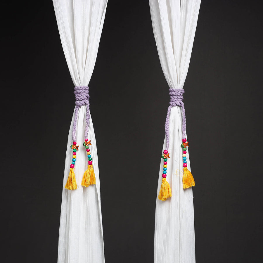 Add style and functionality to your home with this handcrafted bead work curtain tie backs set of 2. Featuring intricate detailing, theyre perfect for keeping curtains neatly in place while enhancing any room’s look. Lightweight durable, and easy to use these tiebacks are a practical and elegant addition to your living space.