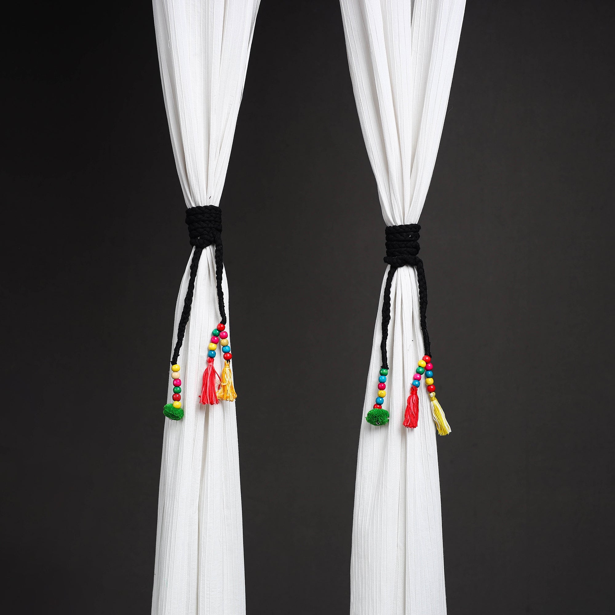 Add style and functionality to your home with this handcrafted bead work curtain tie backs set of 2. Featuring intricate detailing, theyre perfect for keeping curtains neatly in place while enhancing any room’s look. Lightweight durable, and easy to use these tiebacks are a practical and elegant addition to your living space.