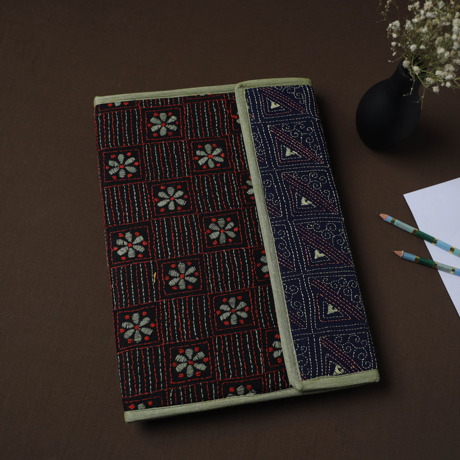 Black - Handcrafted Bengal Kantha Work File Folder 52