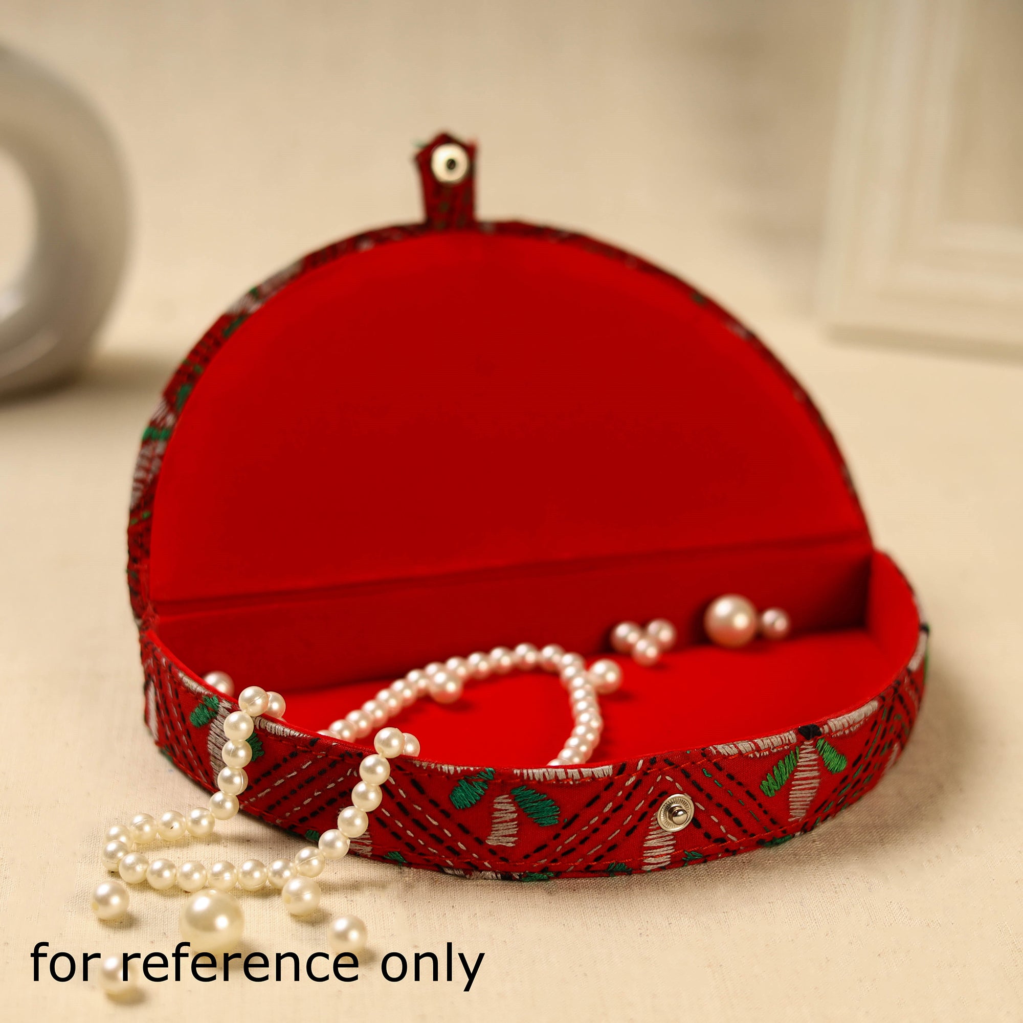 | Material | This green handcrafted jewelry box features traditional bengal kantha hand embroidery on the outside and a soft velvet lining inside for added protection. Made from sturdy hardboard, it keeps your jewelry safe from scratches and dust. |
